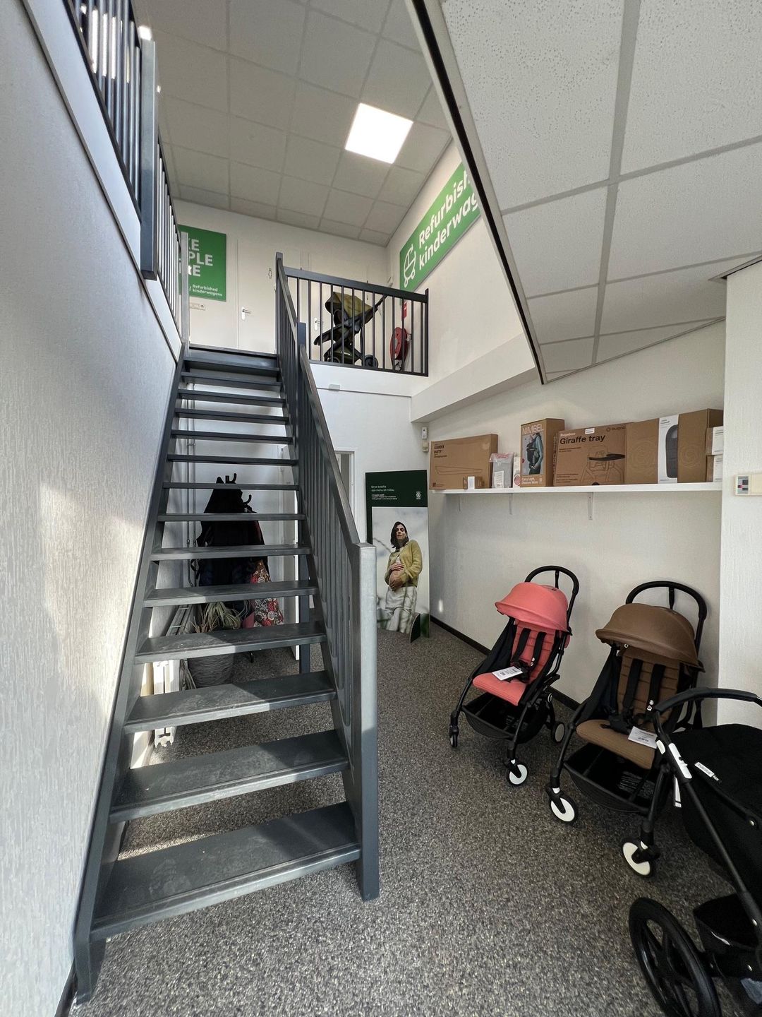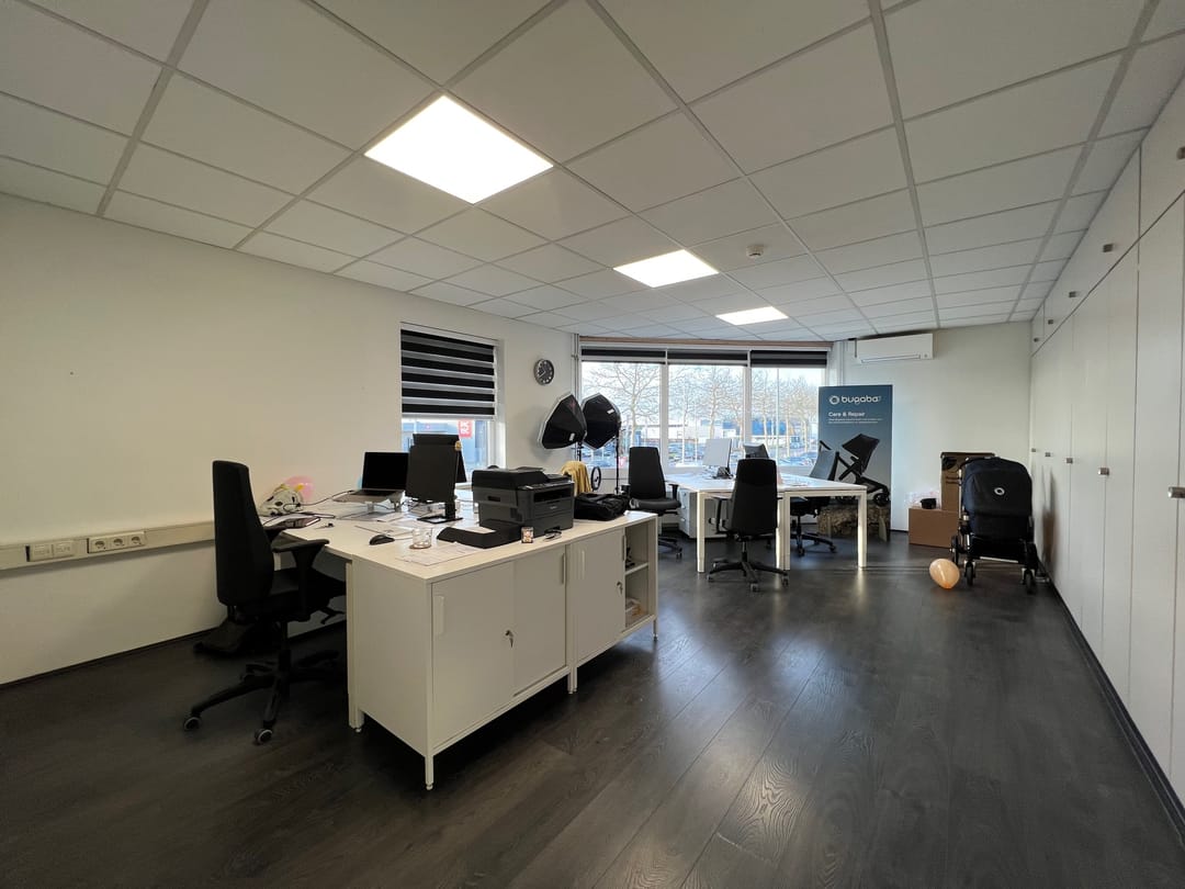 Op de verdieping boven de lage bedrijfsruimte bevindt zich de kantoorruimte, bestaande uit een grote kantoorruimte/kantoortuin met luxe keuken en twee toiletten, alsmede twee separate kantoorruimten. Het kantoorgedeelte is o.a. voorzien van een laminaatvloer, gesausde wanden, een systeemplafond met led-verlichting en verwarming door middel van radiatoren.