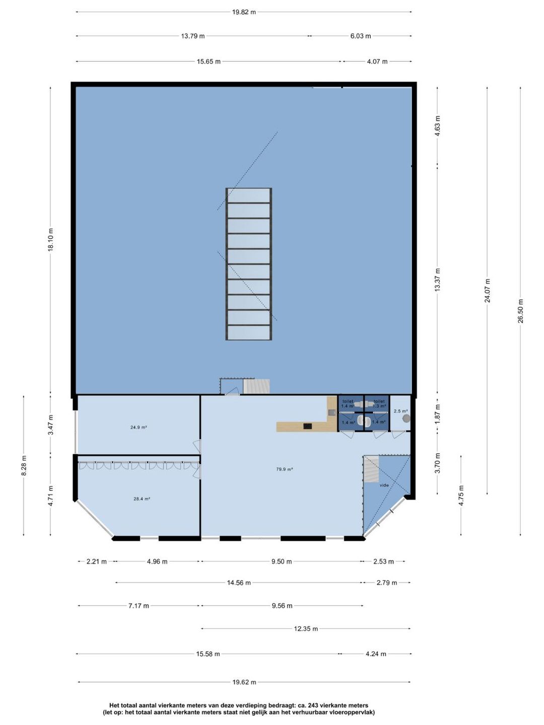 - indeling: grote kantoorruimte met keuken en twee toiletten, alsmede twee separate kantoorcompartimenten;