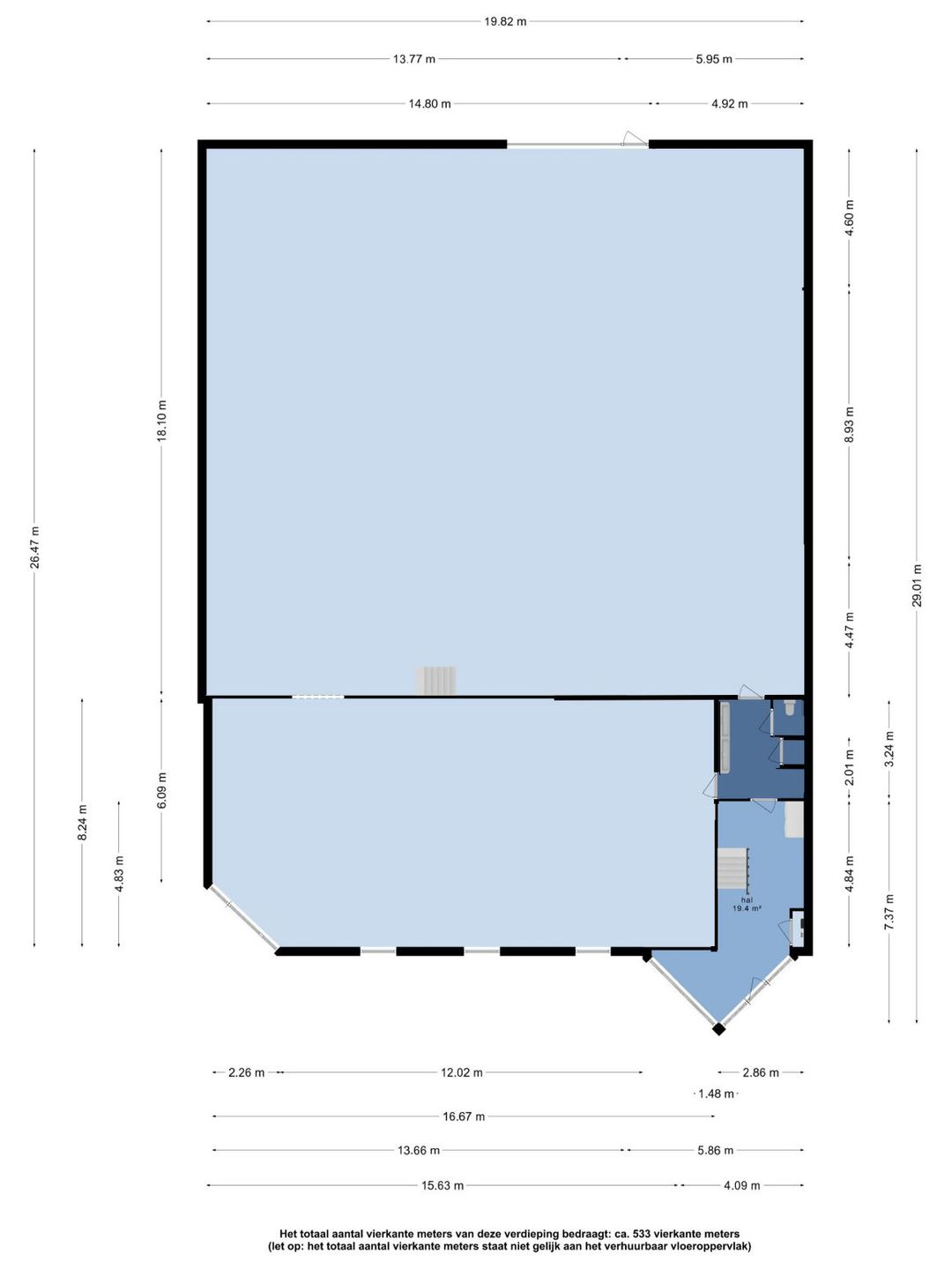 - vrije hoogte onder het staaldak ca. 5,53 meter;
