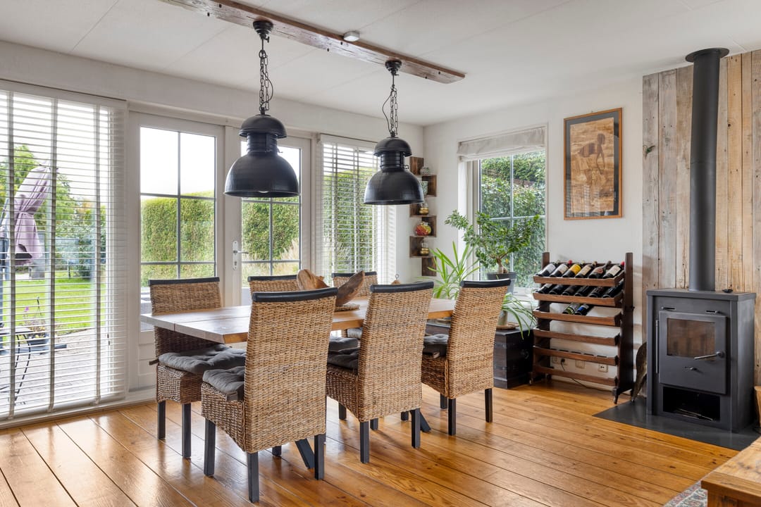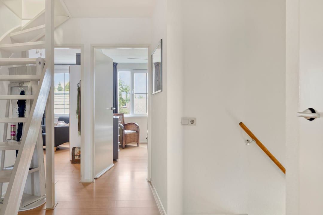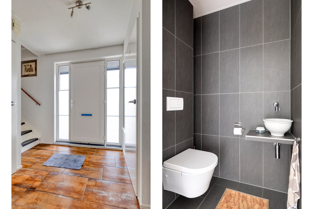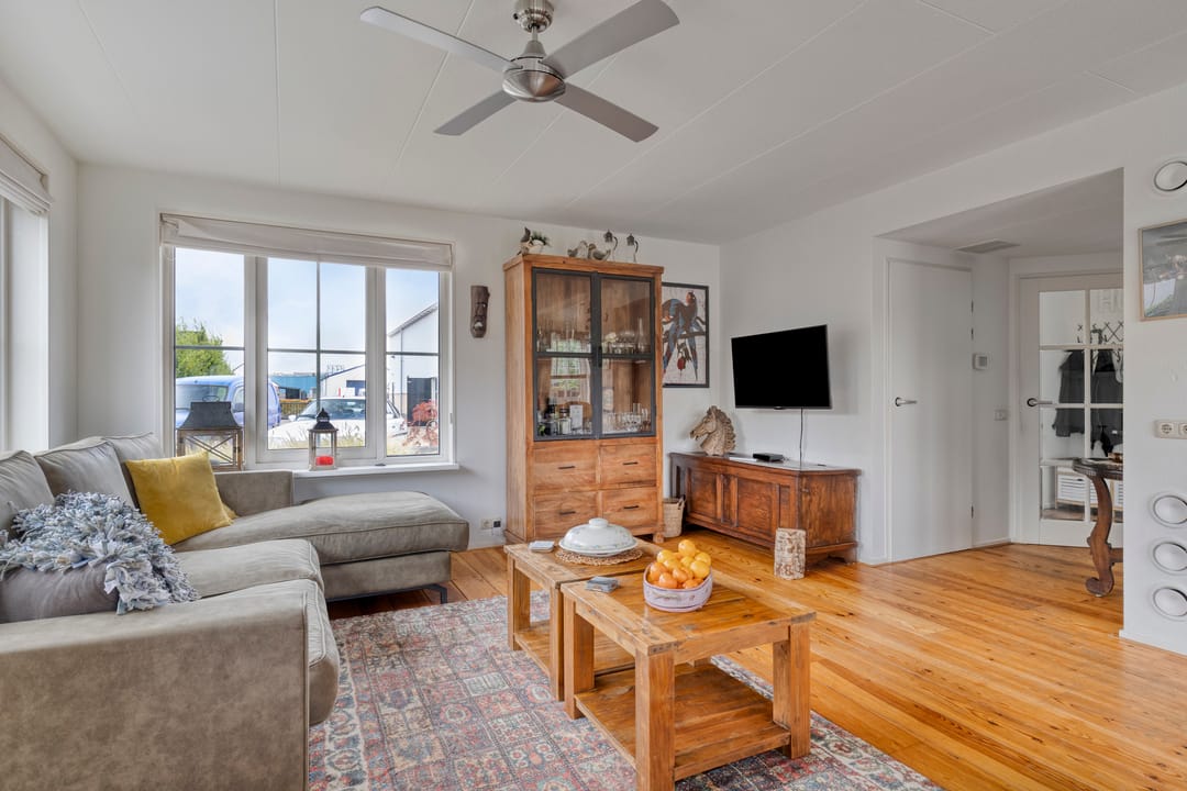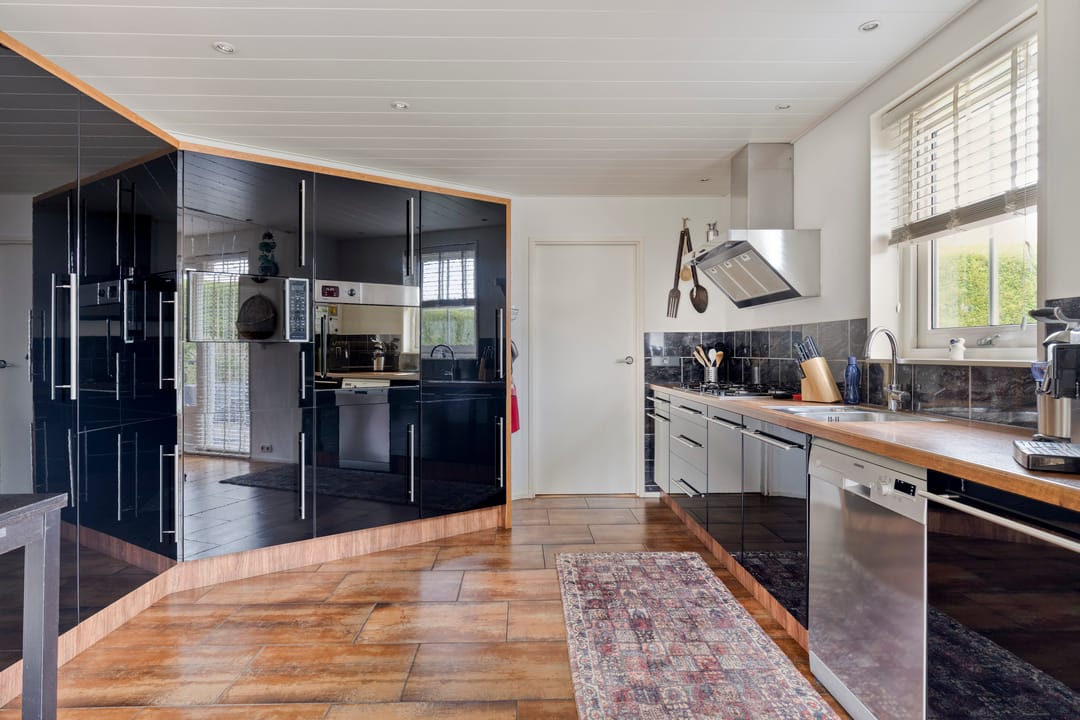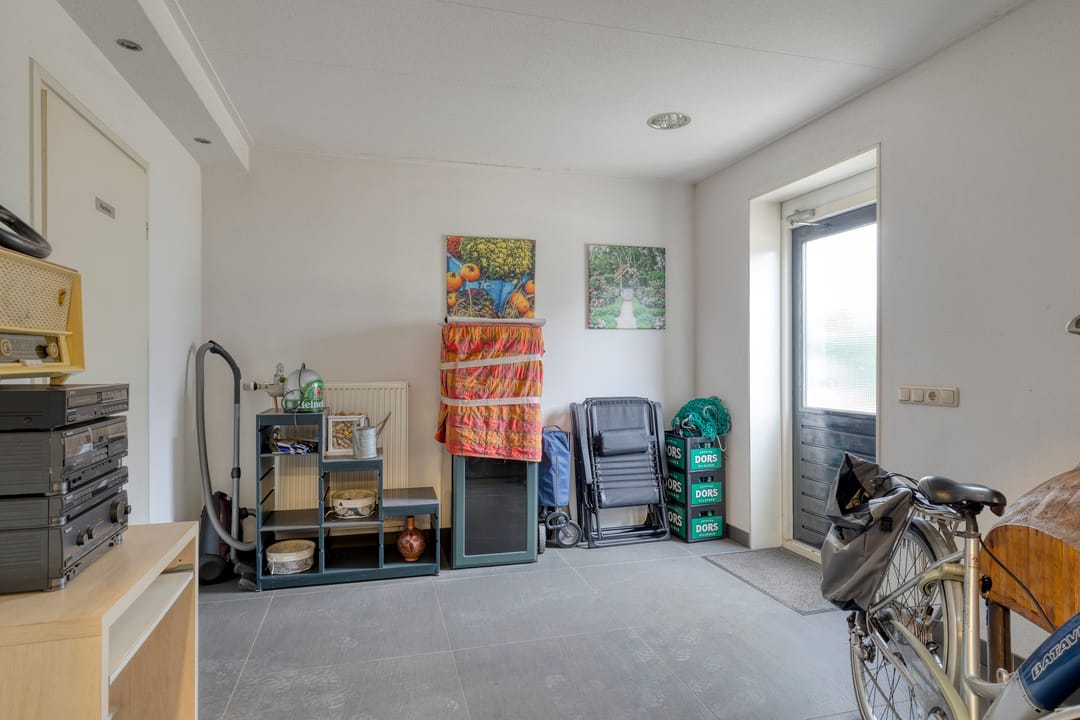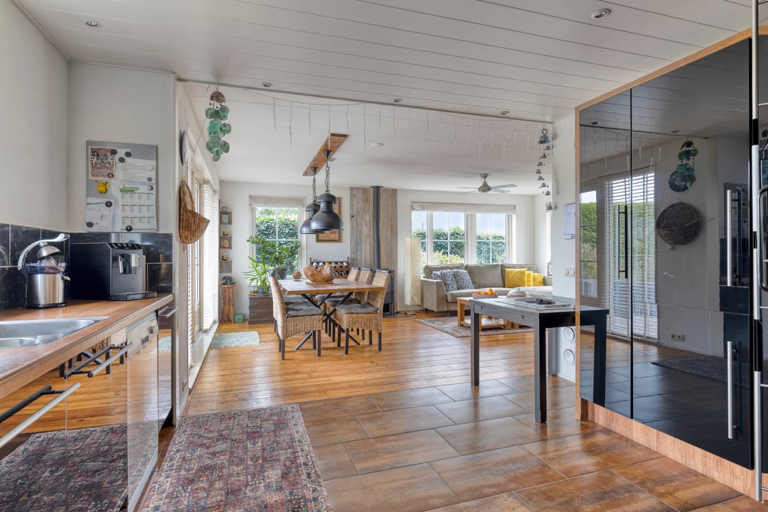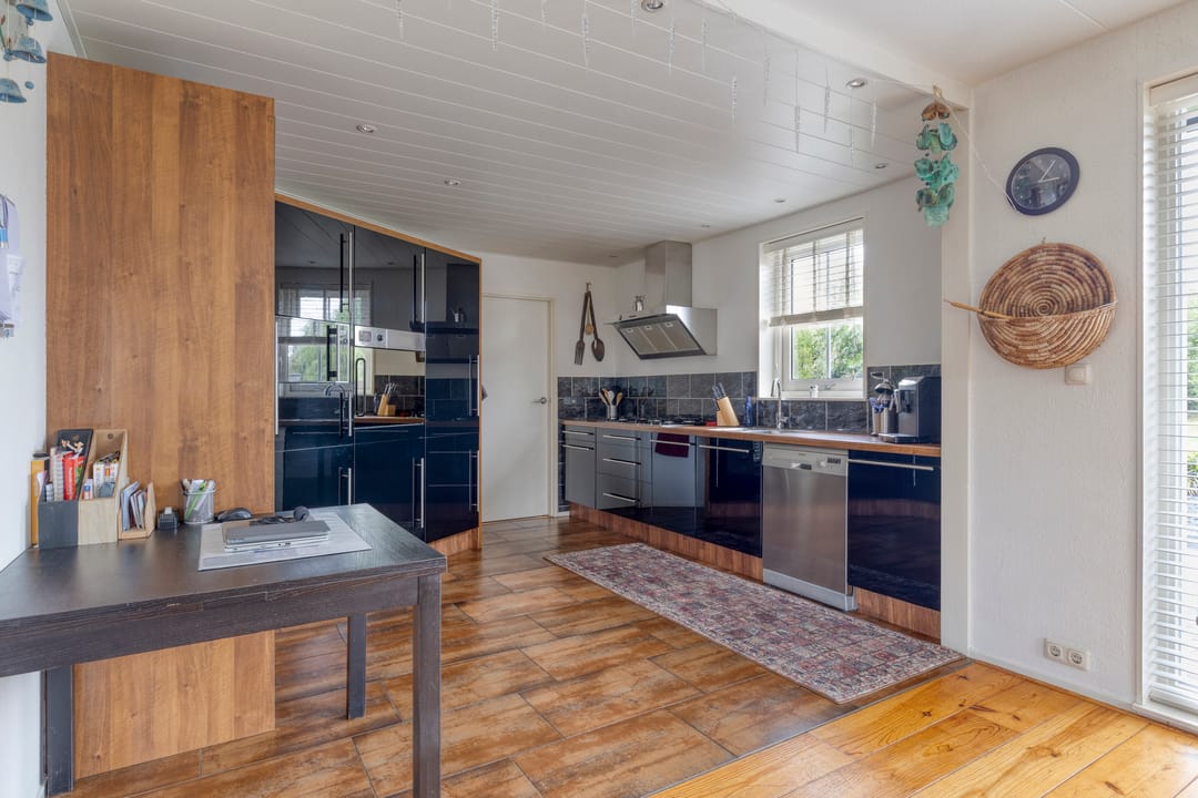 Begane grond: zij-entree met toilet, meterkast en trapopgang, woon- eetkamer met moderne keuken voorzien van gaskookplaat, vaatwasser, afzuigkap en combi-oven, hete lucht oven en koelkast. Toegang vanuit de keuken tot de bijkeuken met witgoedopstelling.