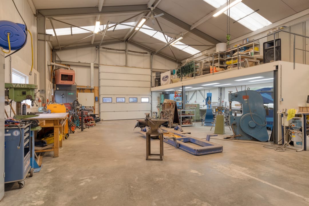Het geheel omvat een riante vrijstaande bedrijfswoning aan de achterzijde en vrijstaande bedrijfsruimte aan de voorzijde.