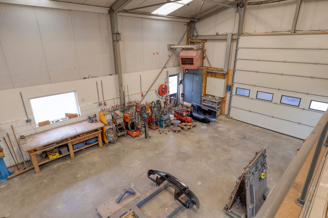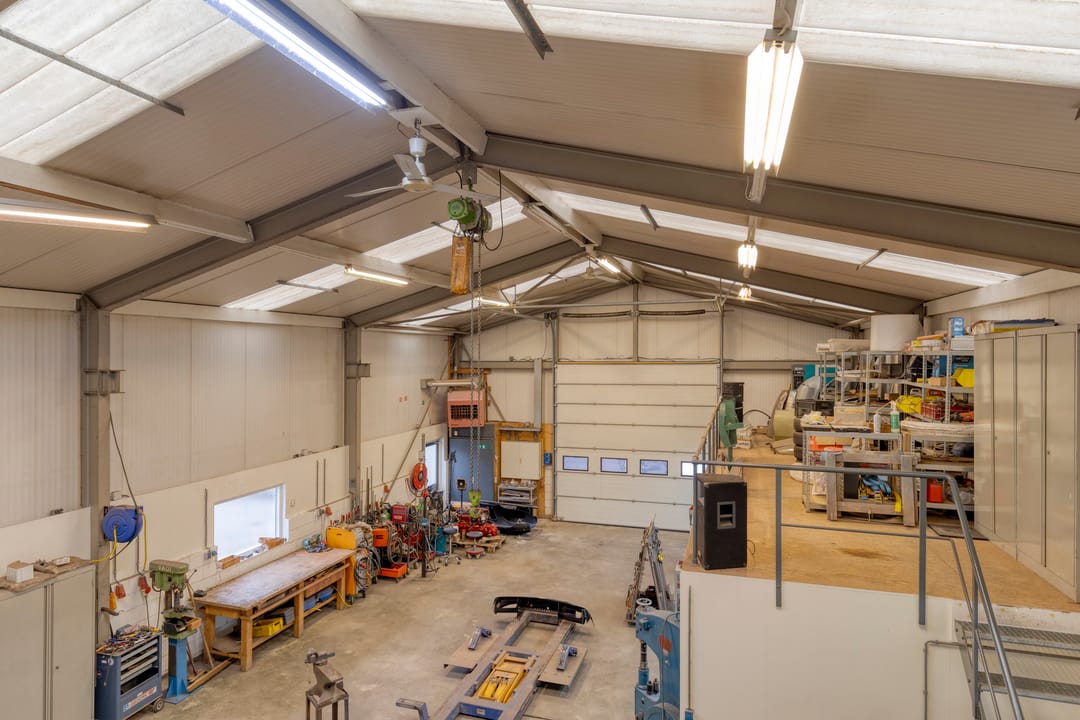 De bedrijfsruimte heeft een oppervlakte van ca. 187 m² en is aan de voorzijde voorzien van een elektrische overheaddeur (400 x 400 cm). De bedrijfsruimte is tevens voorzien van een entresol van ca. 29 m² te bereiken via een stalen trap.