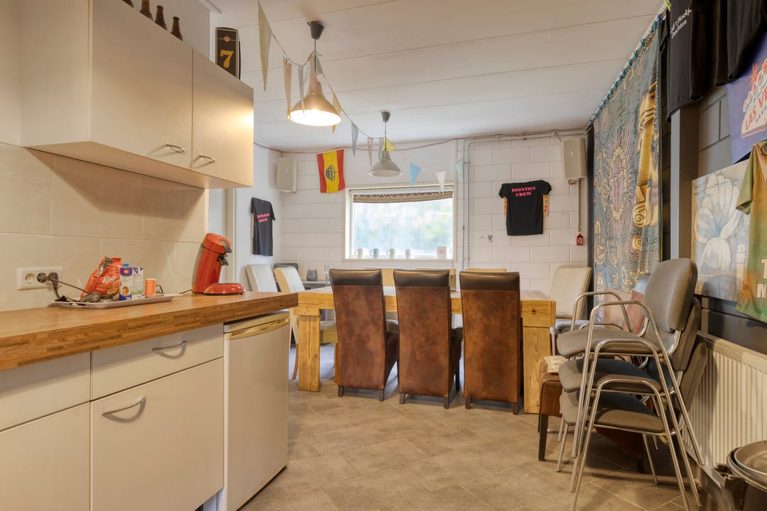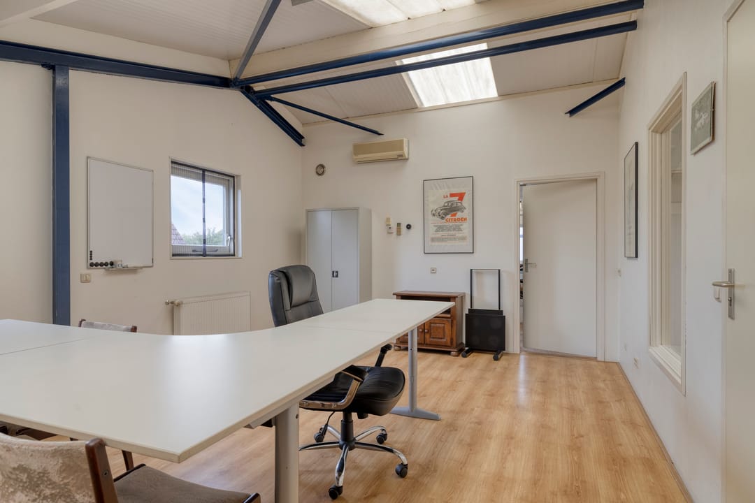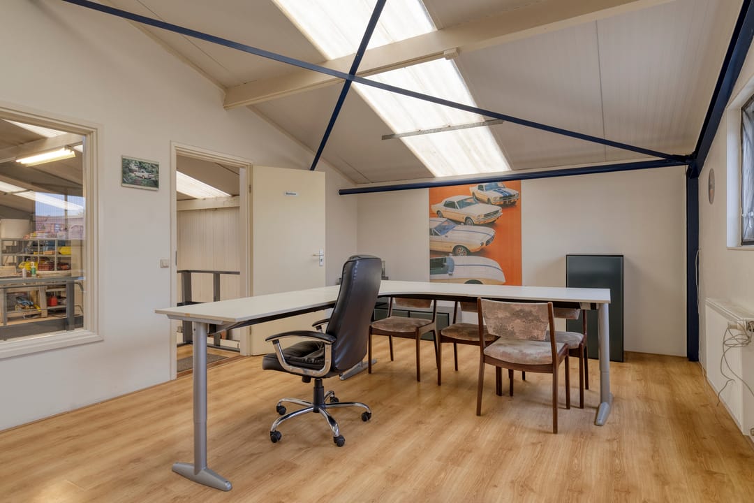 De kantoorruimte/kantine op de begane grond (totaal ca. 38,6 m²) heeft een eigen entree, waardoor deze ook afzonderlijk van de loods te betreden is. Bij binnenkomst een hal met toilet en toegang tot de kantoorruimte/kantine met keuken. De eerste verdieping is te bereiken via een trap vanuit de bedrijfsruimte, hier bevindt zich het kantoor met een kleine opslagruimte ( totaal ca. 39 m²).