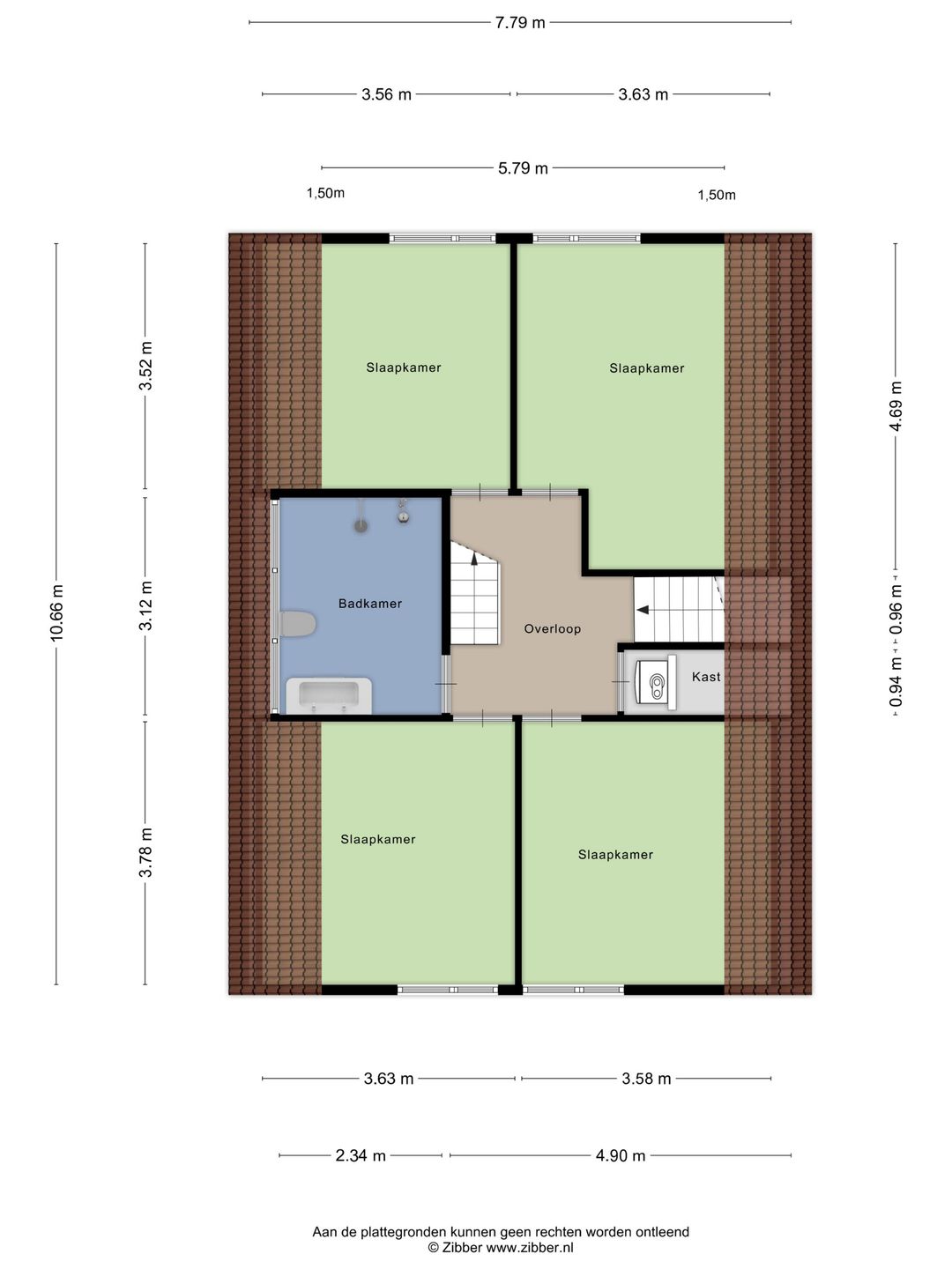 1e verdieping: overloop met 4 slaapkamers en een badkamer welke is voorzien van een toilet, inloopdouche en wastafel.