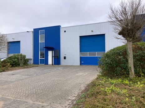 Te koop: op industrieterrein "De Haven" mooie bedrijfsloods van van ca. 330 m2 met op de verdieping kantine-/kantoorruimte en keuken (ca. 64 m2).