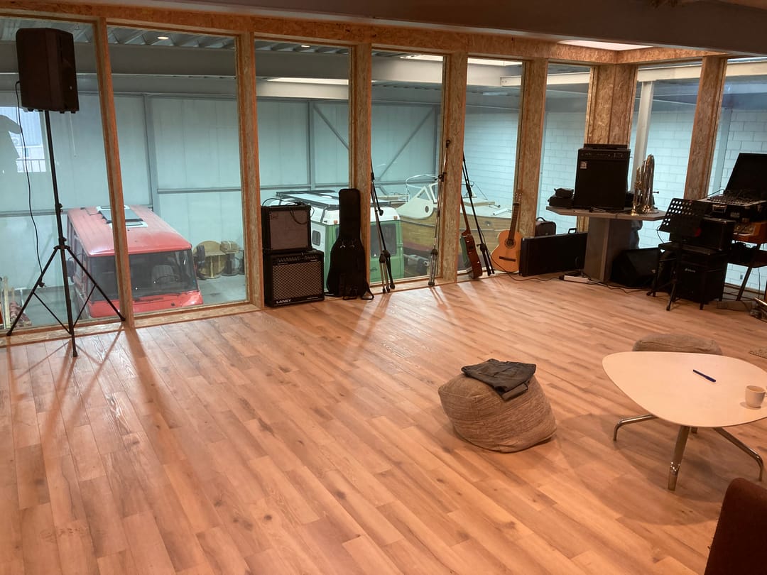 - Lichtstraten, overheaddeuren, betonvloer, heater, toilet en pantry
