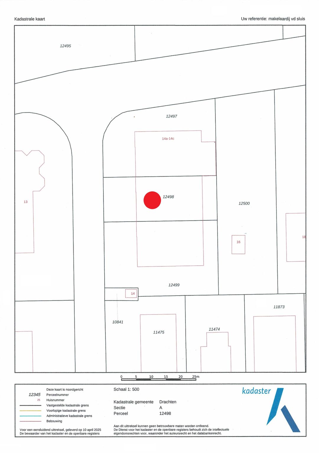 Kadastraal: gemeente Drachten, sectie A, nr. 12498, groot 571m2