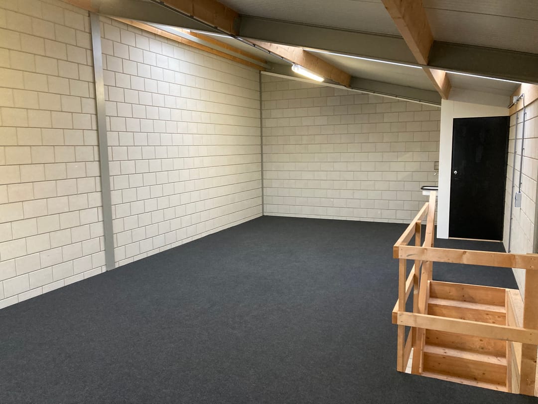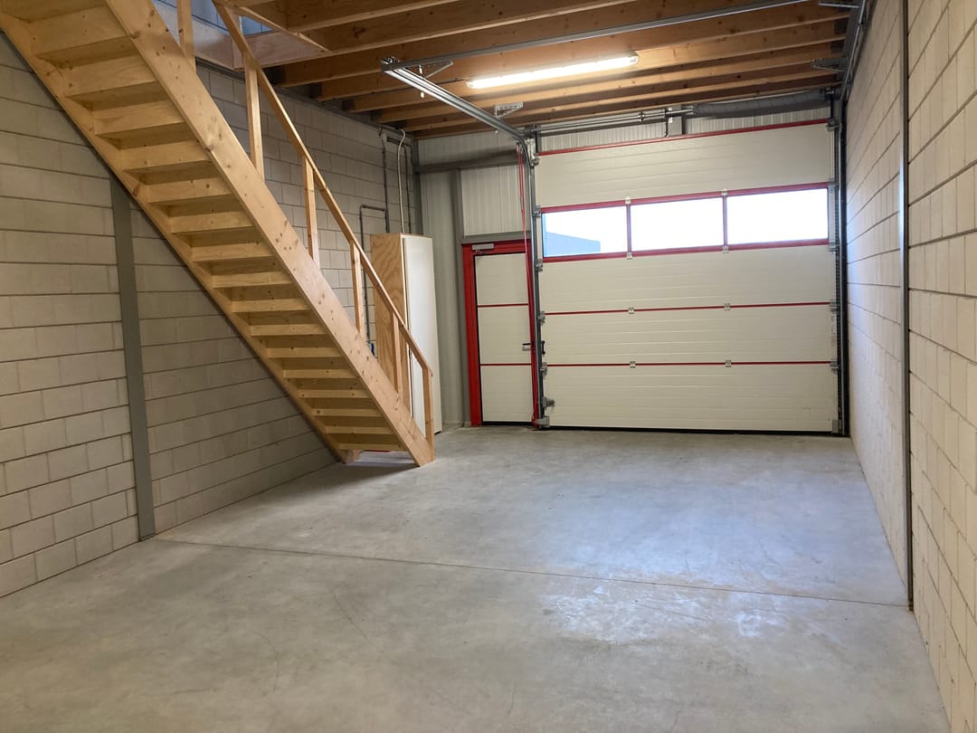 Op industrieterrein "De Haven" te huur: kleine bedrijfs-/opslagunit van 50 m2 + verdiepingsvloer van 50 m2. Ligging aan de straatkant.