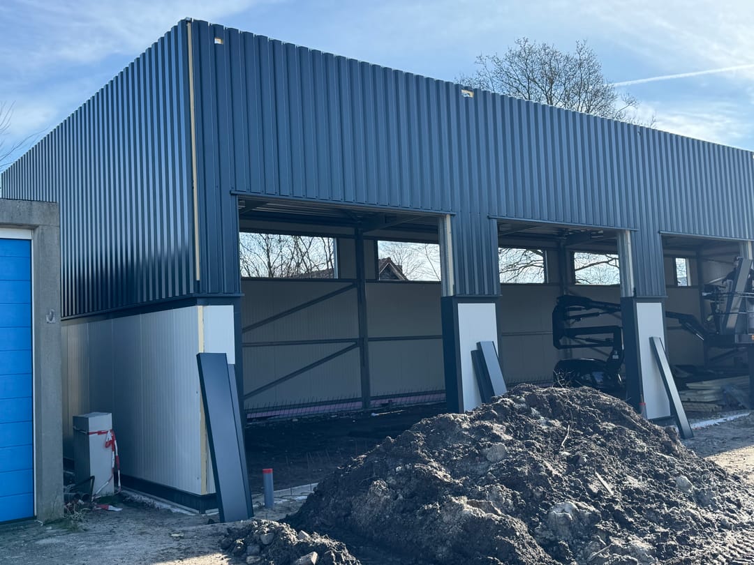 De binnenwanden tussen de bedrijfsunits worden uitgevoerd in sandwichpanelen