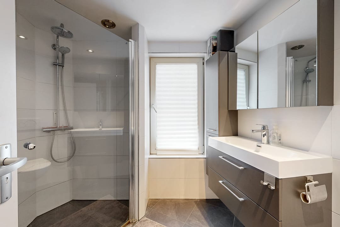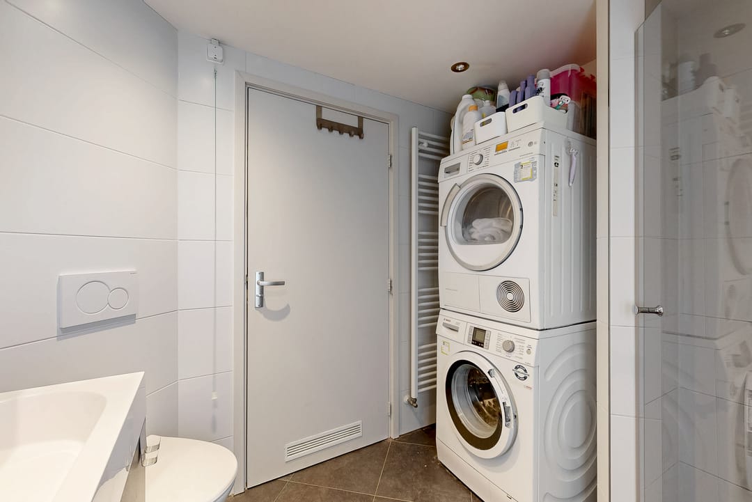 Overloop met CV-kast (Remeha Avanta 2020); drie slaapkamers; badkamer met douche, toilet, wastafel en wasmachine- en droger aansluiting.