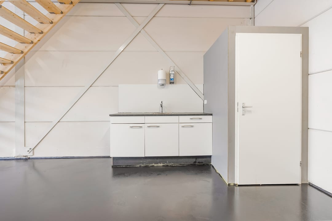 Bij binnenkomst wordt u verwelkomd door een ruime, lichte bedrijfsruimte met een prettige uitstraling en een praktische indeling. De begane grond is voorzien van een toilet en een voorbereide hoek voor een pantry of keuken, ideaal voor het creëren van een comfortabele werkomgeving.