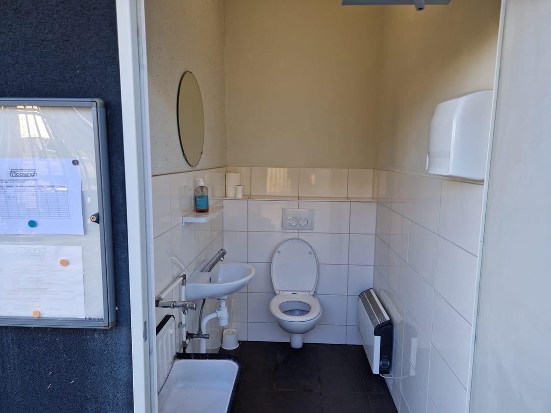 Er is een gezamenlijk toilet met een wateraansluiting en stortbak, er zijn brievenbussen en het buitenterrein is altijd afgesloten met een elektrische poort. U heeft toegang middels een eigen keytag.