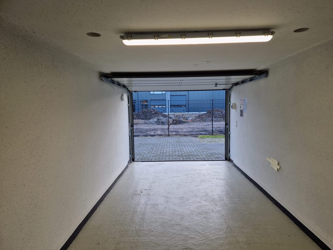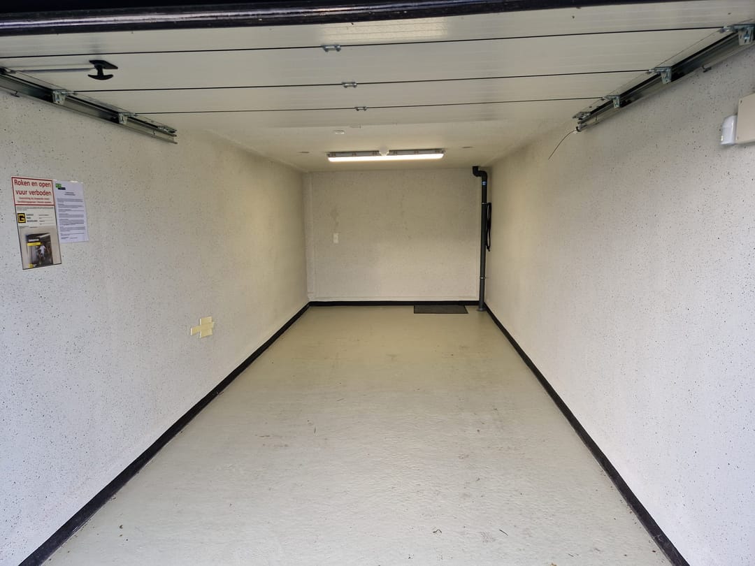 De netjes afgewerkte ruimte is voorzien van een betonvloer met coating, elektra, verlichting en overheaddeur (doorrijhoogte ca. 2,1 m), brand en inbraakbeveiliging aangesloten op een meldkamer.