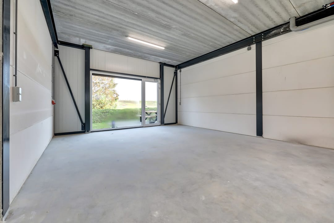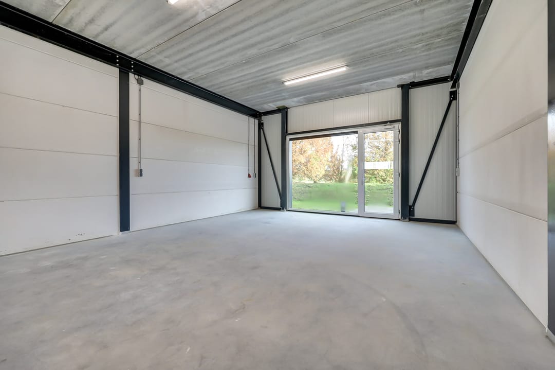- Overheaddeuren, krachtstroom, betonvloer, toilet, pantry, airconditioning en te openen ramen