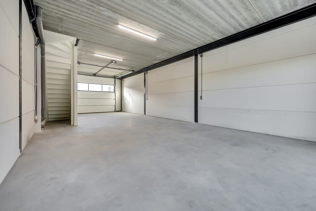 De units zijn voorzien van een betonnen verdiepingsvloer, dakdoorvoer, elektrisch bedienbare overheaddeur, raamkozijn boven de overheaddeur, verdiepingstrap en een dekvloer op de verdieping met 6 loze leidingen.