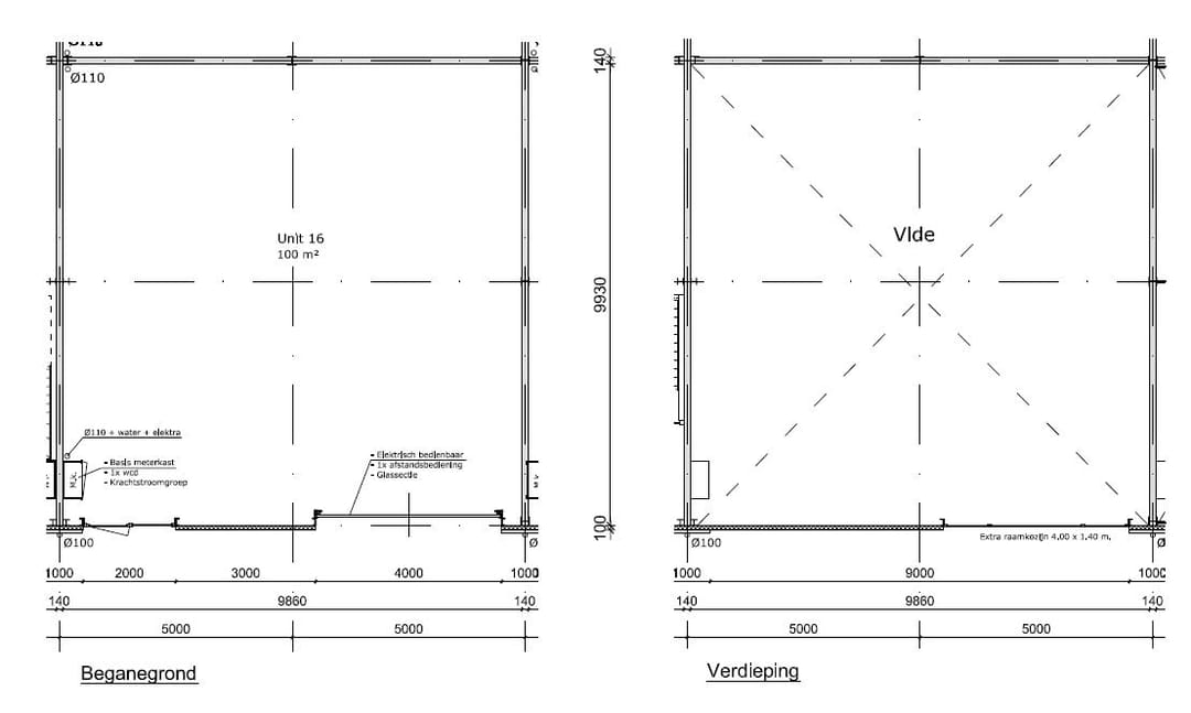 - Afmeting: ca. 10,0 m x 9,90 m.