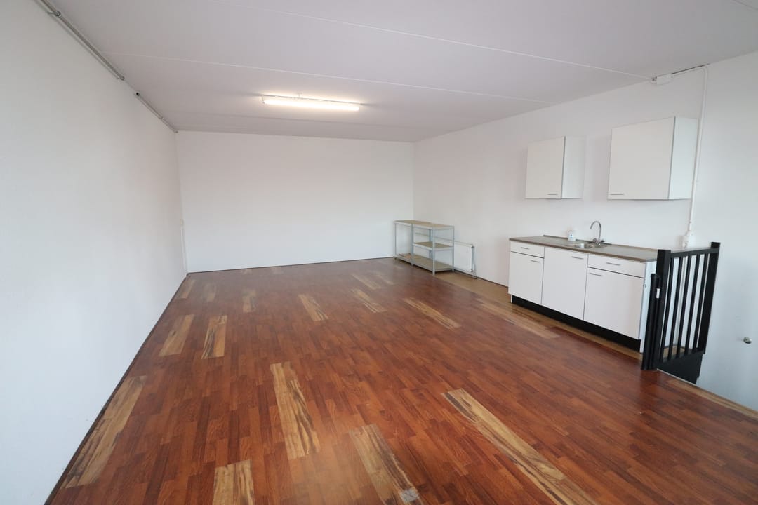 - Overheaddeuren, betonvloer, toilet en pantry