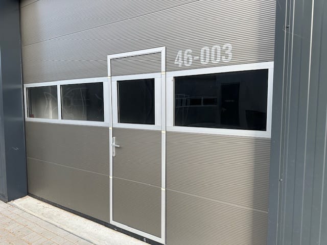 - elektrische overheadroldeur met geïntegreerde loopdeur en raamvenster.