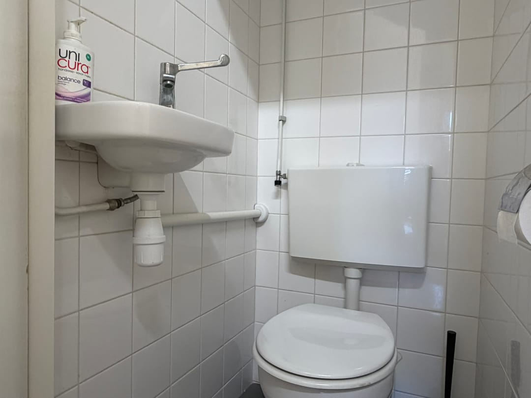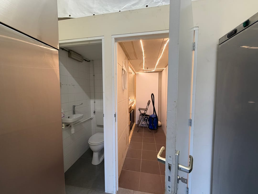 Indeling: mooi betegelde werkruimte, waarbij de 2 units onderling zijn verbonden via een tussendeur en opening in de tussenmuur, mooi toilet en een magazijntje met vaste kasten.