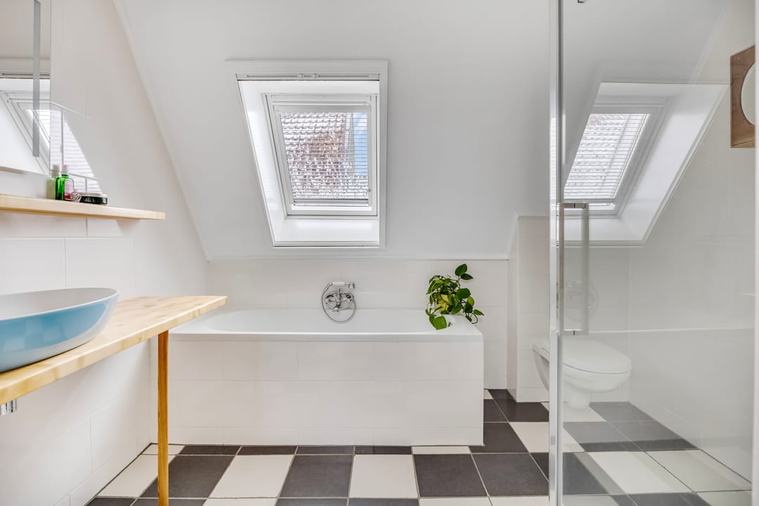In de aanbouw bevinden zich de vierde slaapkamer en de badkamer (2020), beide te bereiken vanaf de overloop. Deze slaapkamer is, net als de grote kamer aan de voorzijde, groot genoeg voor een tweepersoonsbed. In de badkamer heb je de beschikking over een ligbad, aparte douche, een toilet en een wastafel. Ook hier zorgt een dakraam voor veel lichtinval.