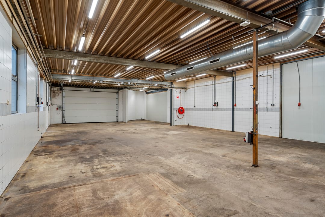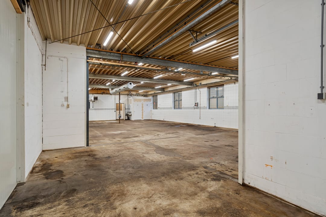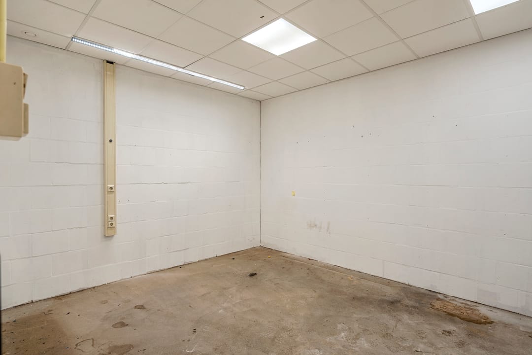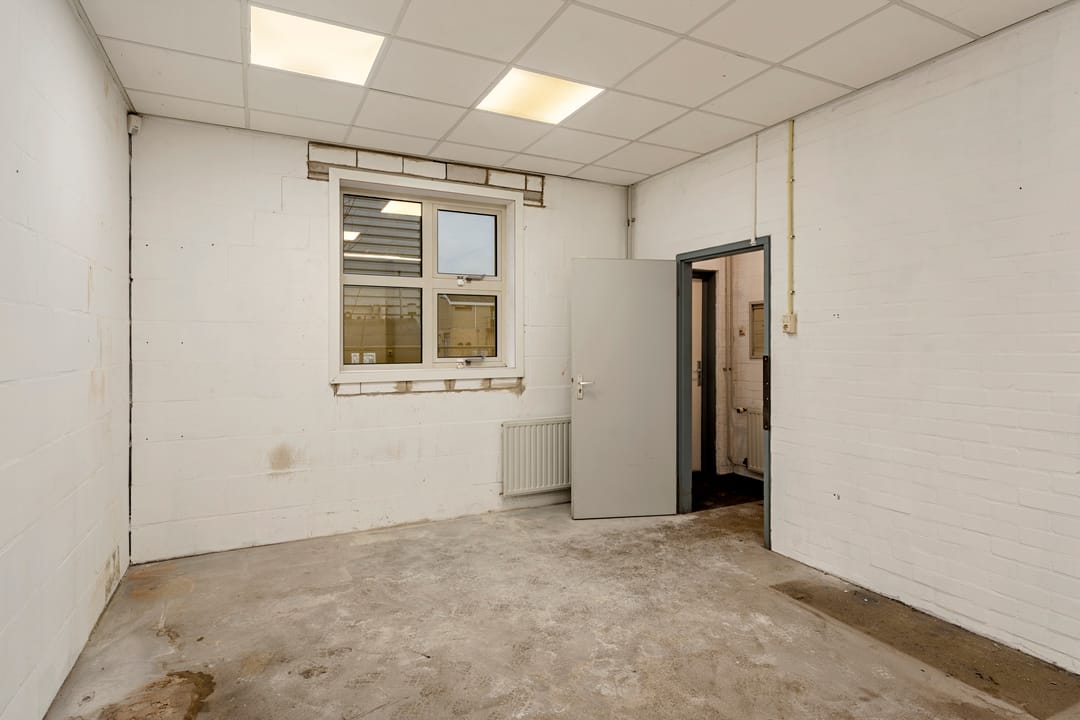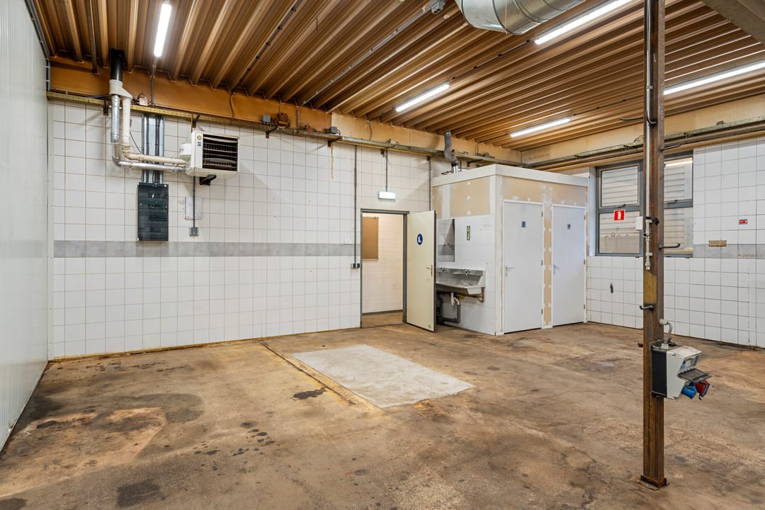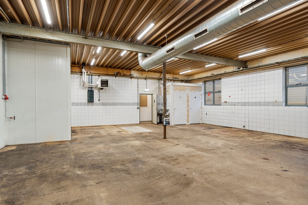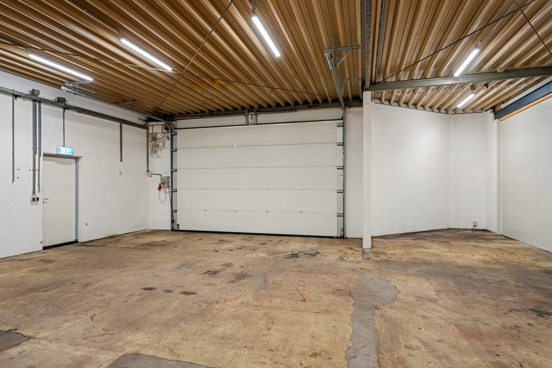- Overheaddeuren, betonvloer, heater en toilet