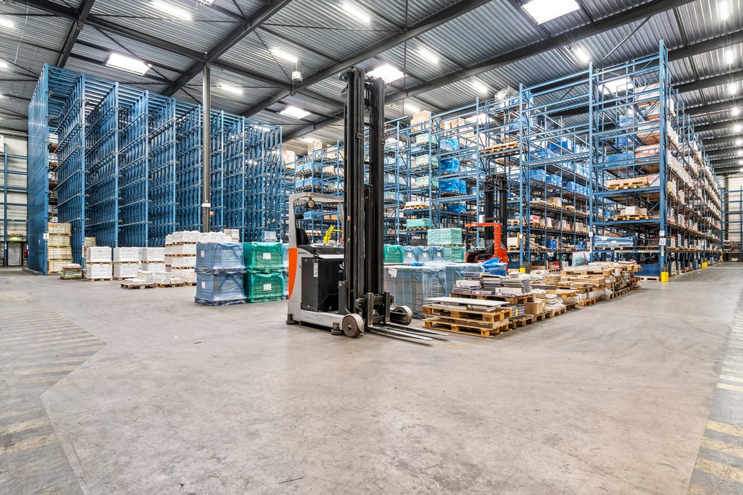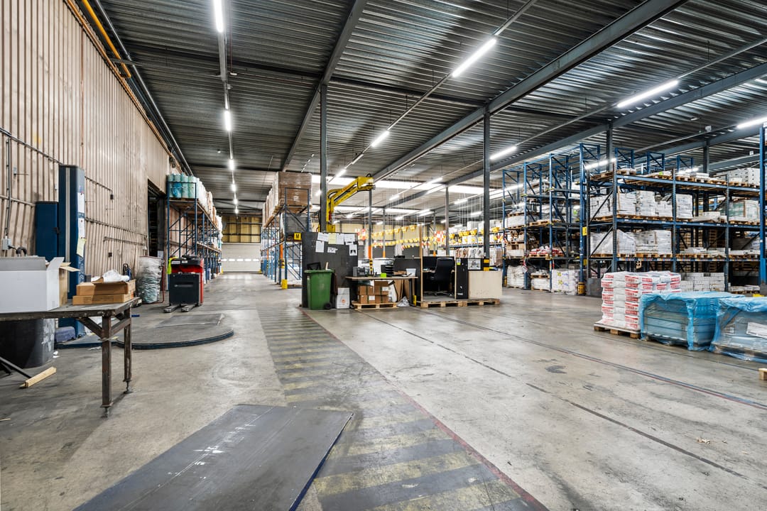 - Lichtstraten, loading docks, overheaddeuren, betonvloer, heater en toilet
