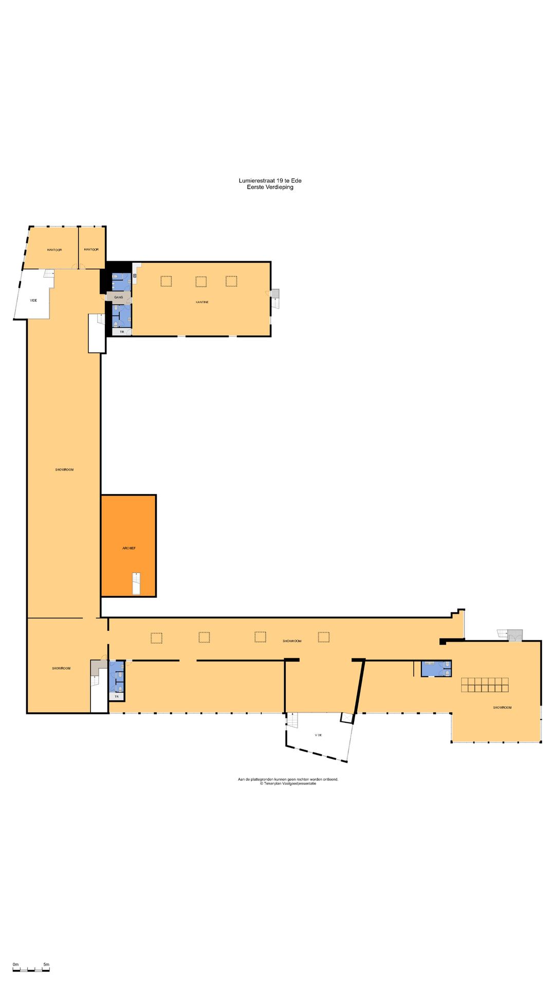 Showroom/kantoorruimte: € 70,-- per m² per jaar.