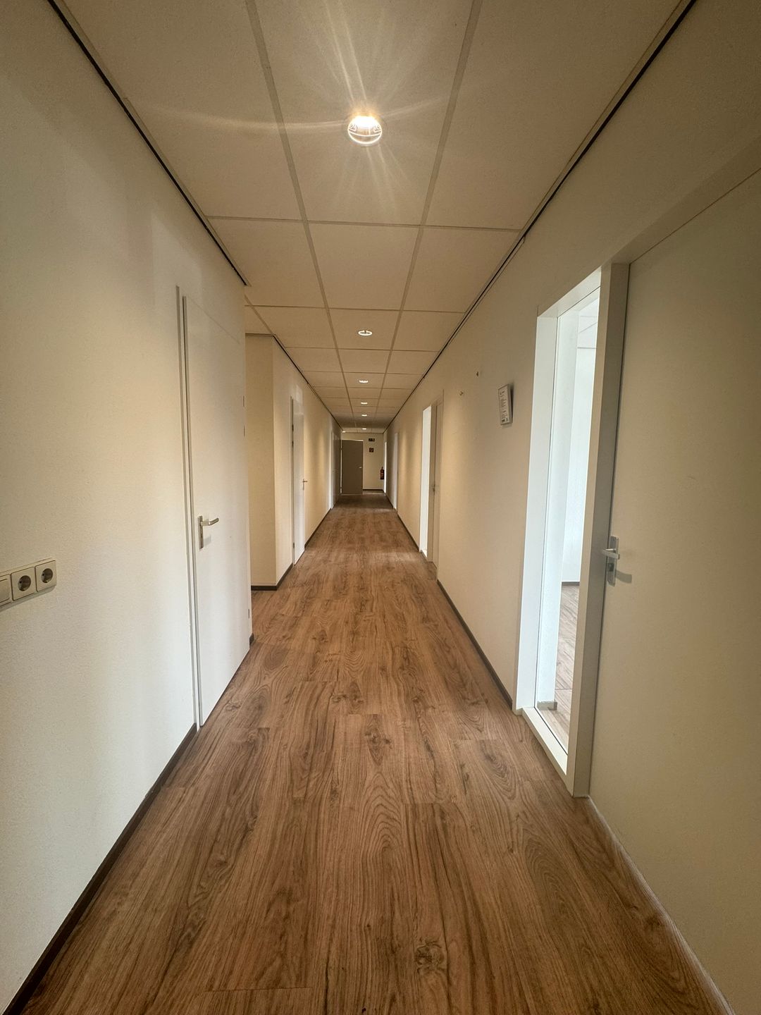 ca. 260 m² kantoorruimte op de 1e etage verdeeld over kantoren, spreekruimtes, kantine, sanitair en archief;