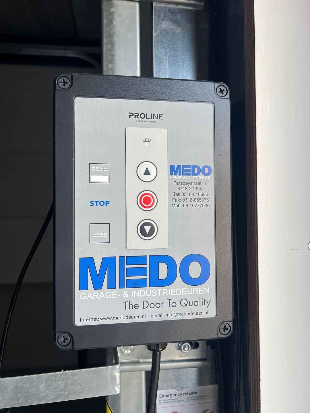 • elektrisch bedienbare overheaddeur (3,50 meter hoog en 3,30 meter breed), niet aangesloten;