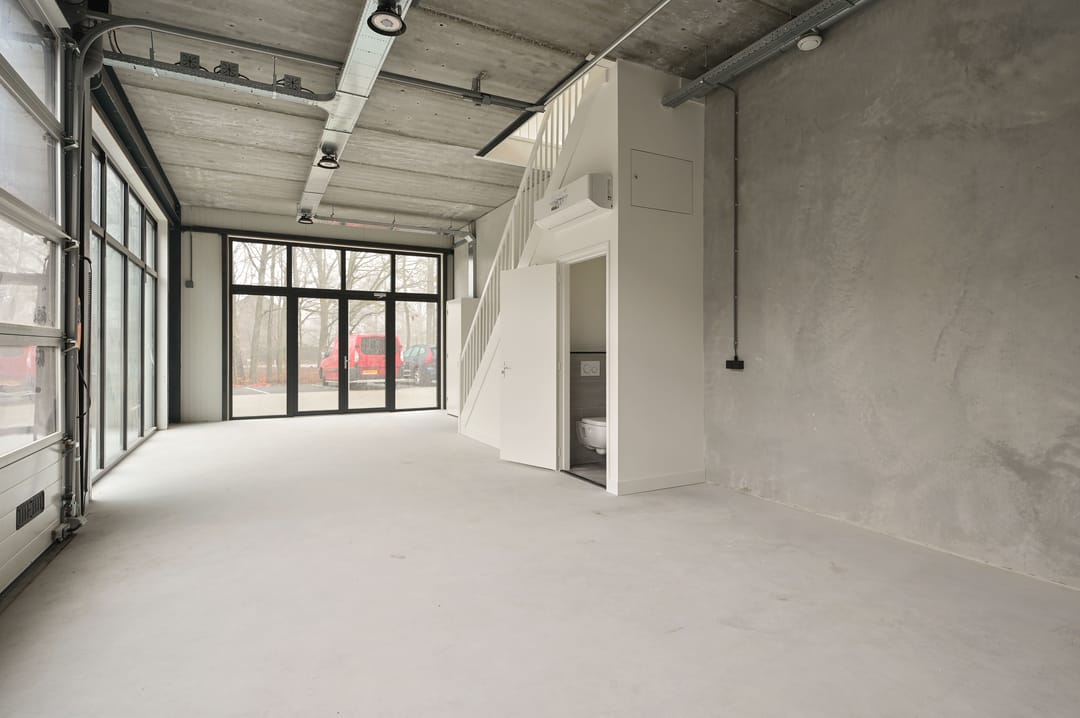 - Airconditioning, overheaddeuren, betonvloer, toilet en te openen ramen