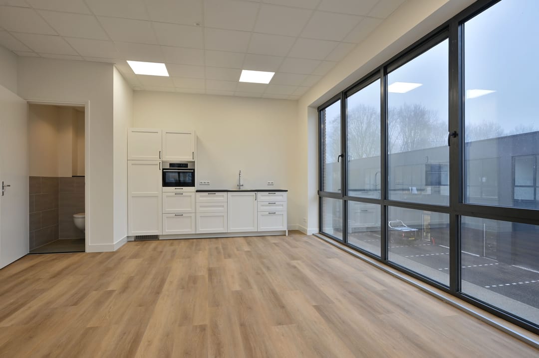 Hoogwaardig afgewerkte HOEKUNIT met 4 eigen parkeerplaatsen beschikbaar voor de verhuur. De unit heeft een zeer compleet opleveringsniveau en omvat in totaal circa 120 m² verdeeld over de begane grond en eerste verdieping. Dankzij de royale raampartijen aan meerdere zijden profiteert het pand van veel natuurlijke lichtinval, wat zorgt voor een prettige werkomgeving. De bereikbaarheid is uitstekend gezien de directe ligging nabij de op- en afritten van de A27.