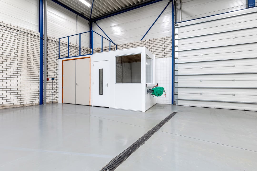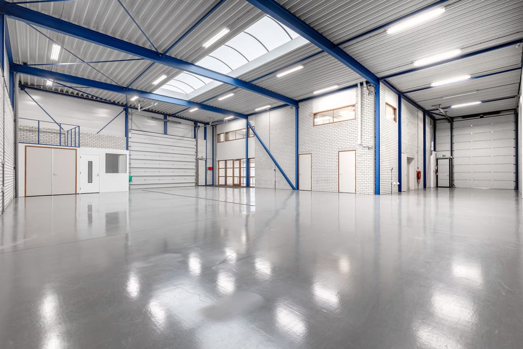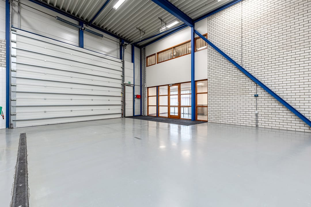- Lichtstraten, overheaddeuren, krachtstroom, betonvloer, heater, airconditioning, mechanische ventilatie en te openen ramen