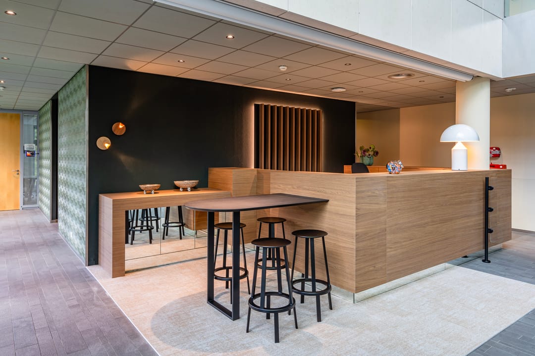 • Gescheiden gerenoveerde dames- en herentoilet per kantoorvleugel.