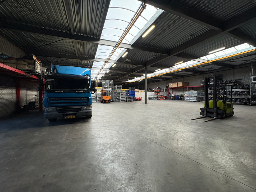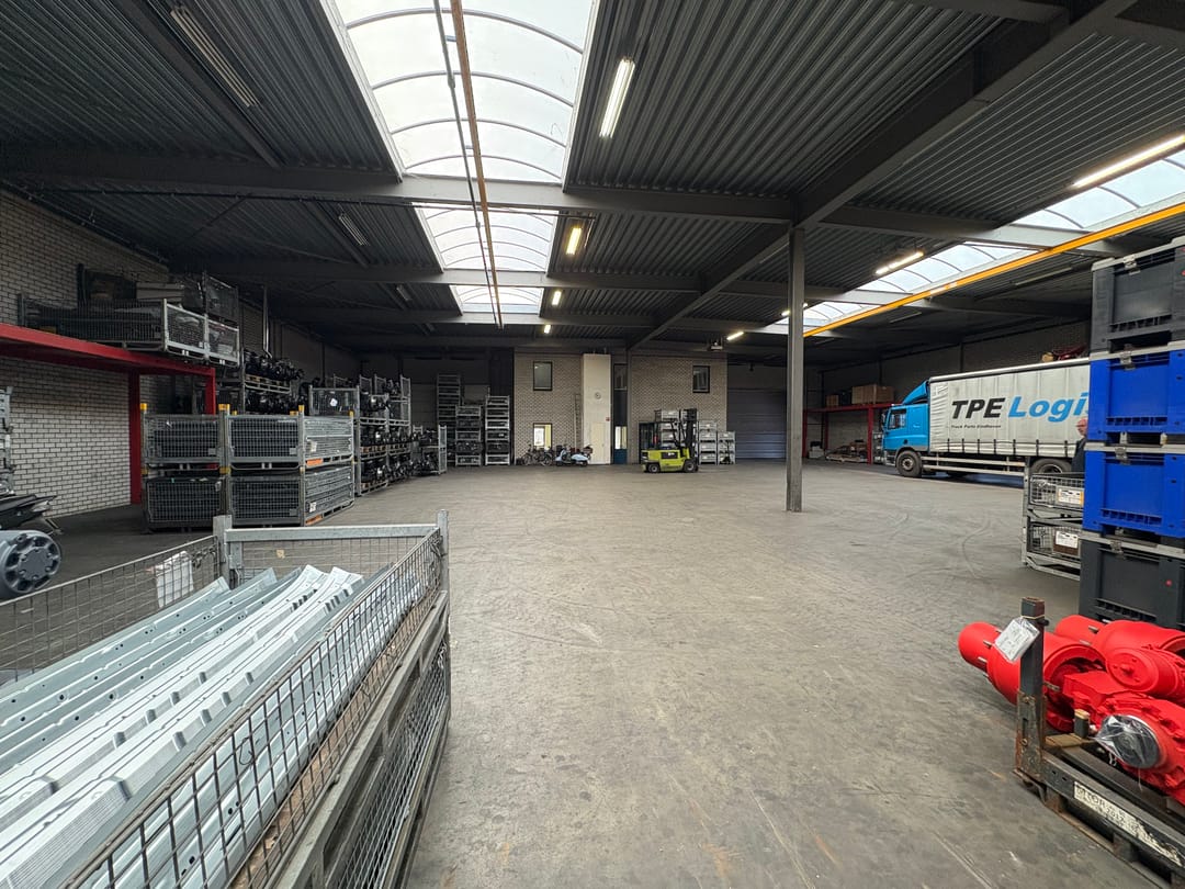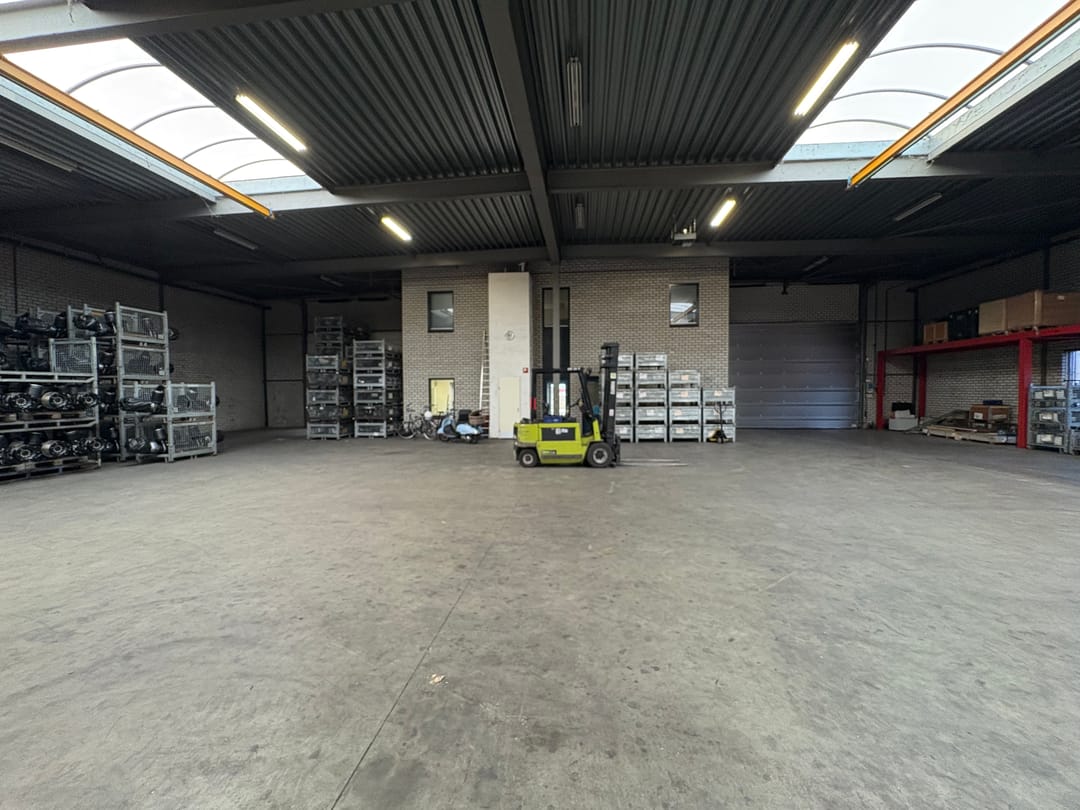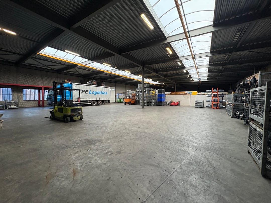 - Lichtstraten, overheaddeuren, krachtstroom, betonvloer, heater, toilet, pantry, mechanische ventilatie, inbouwarmaturen en te openen ramen