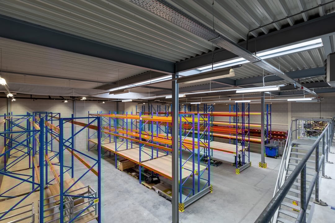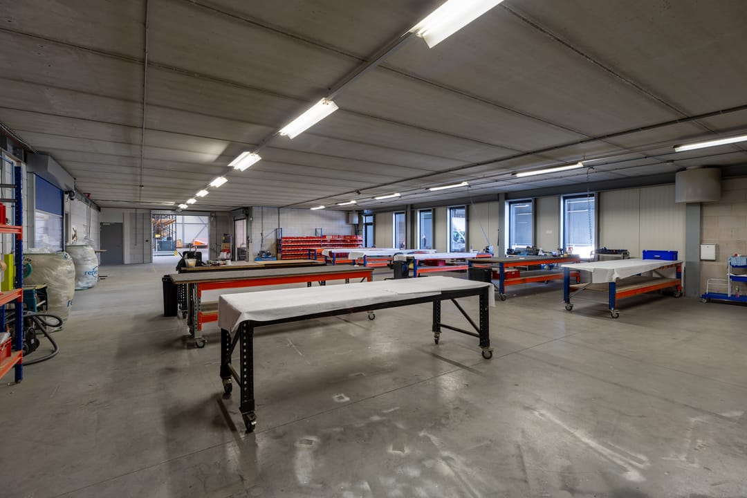 In de bedrijfsruimte kunnen de stellingen achterblijven.