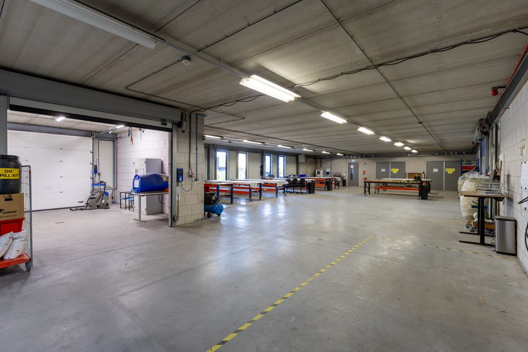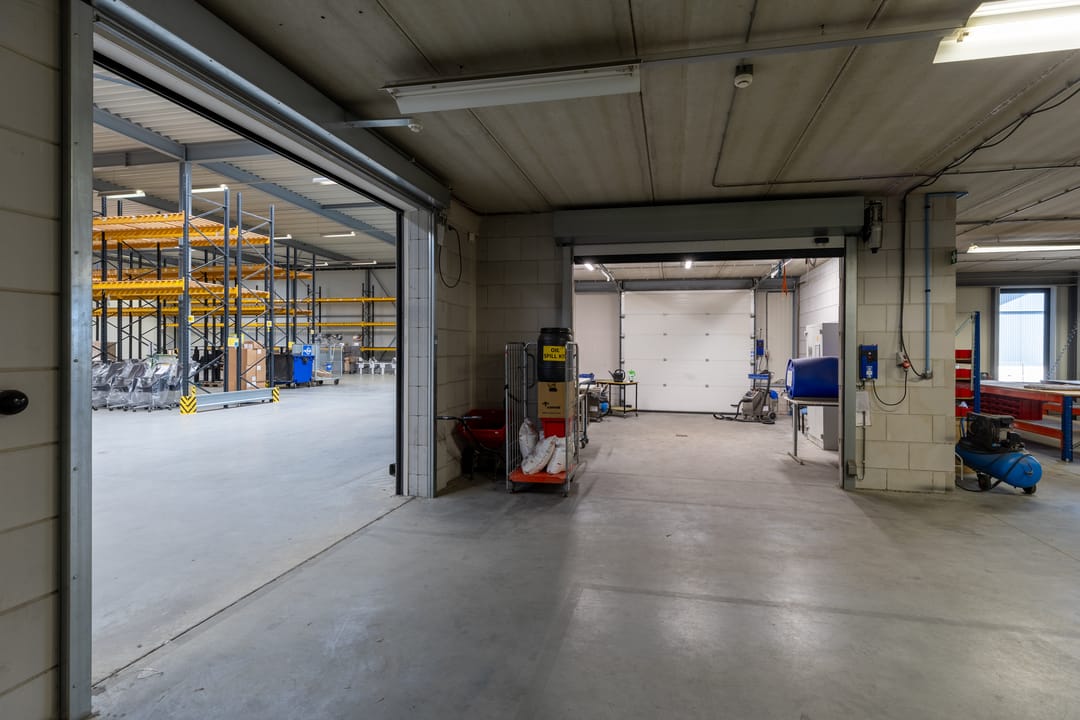 - Lichtstraten, loading docks, overheaddeuren, krachtstroom, betonvloer, heater, toilet en pantry