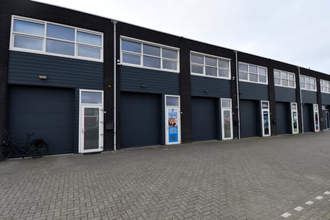 - De bedrijfsruimtes hebben ieders een handbediende overheaddeur (2,45 m. breed x 3,00 m. hoog).