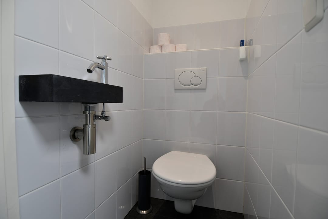 - Mechanische ventilatie, betonvloer, toilet, airconditioning, inbouwarmaturen en te openen ramen