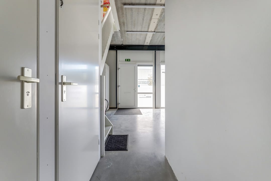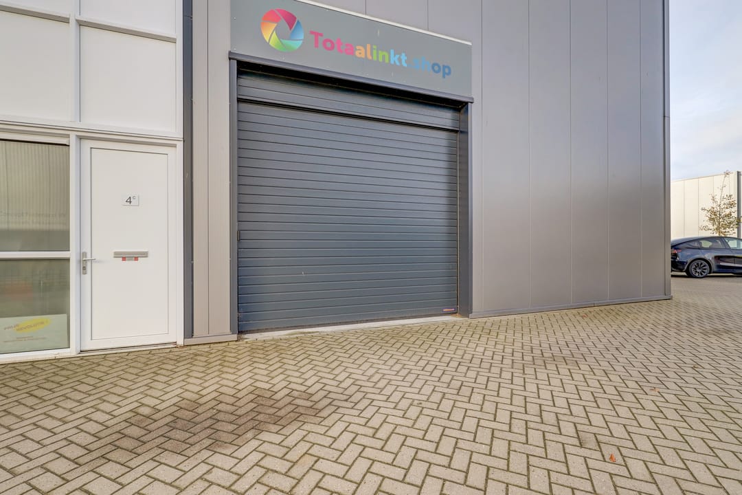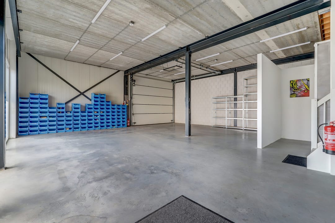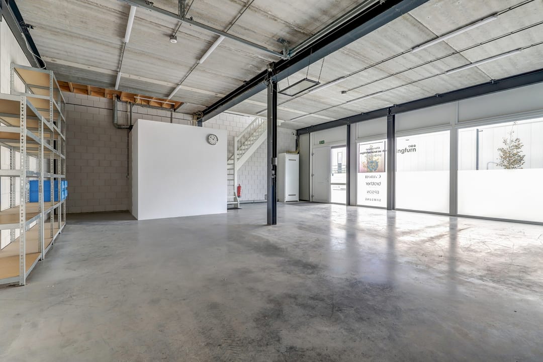 - Overheaddeuren, krachtstroom, betonvloer, toilet, pantry, airconditioning, inbouwarmaturen en te openen ramen