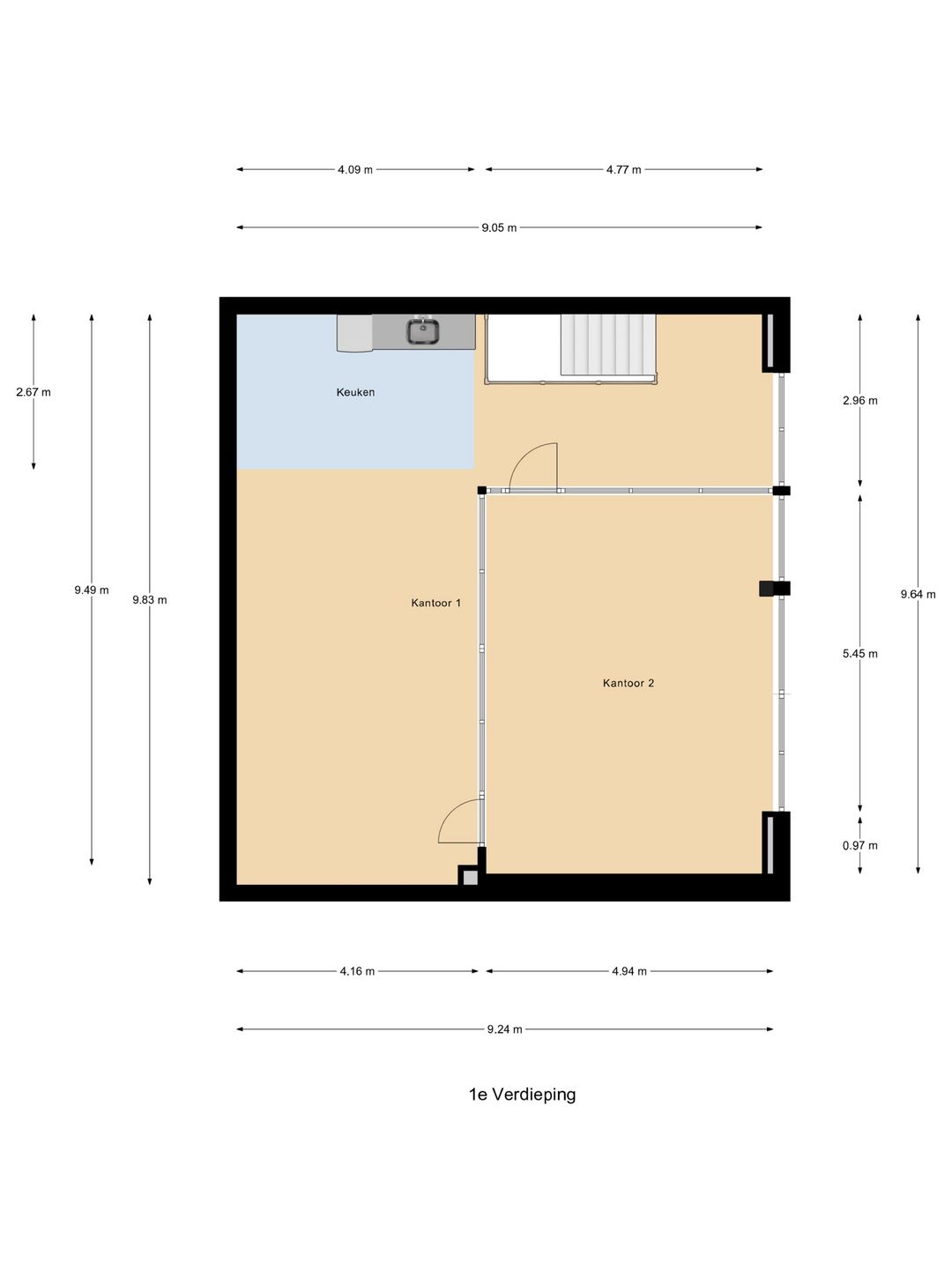 Kantoorruimte eerste verdieping: circa. 90 m2