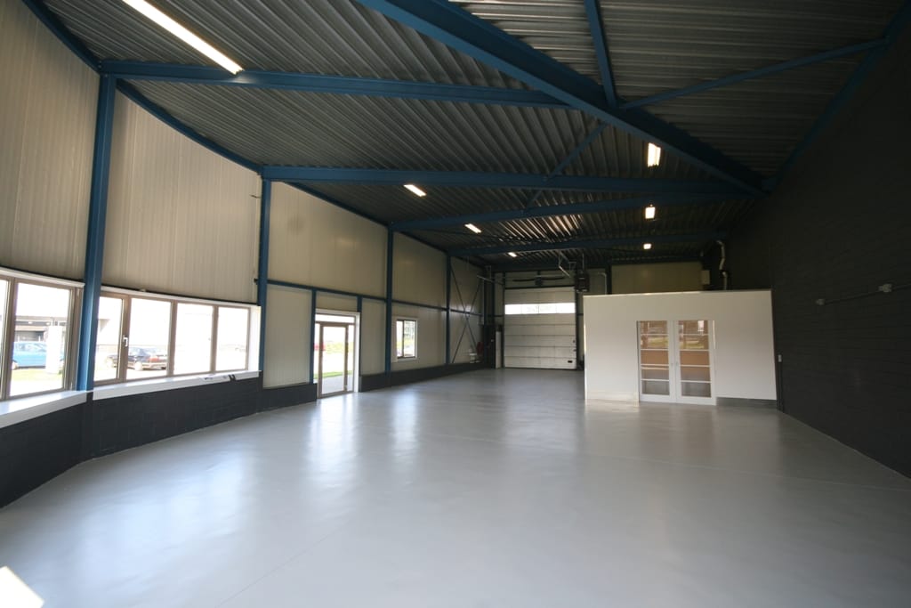 - Overheaddeuren, krachtstroom, betonvloer, heater, toilet, pantry, inbouwarmaturen en te openen ramen