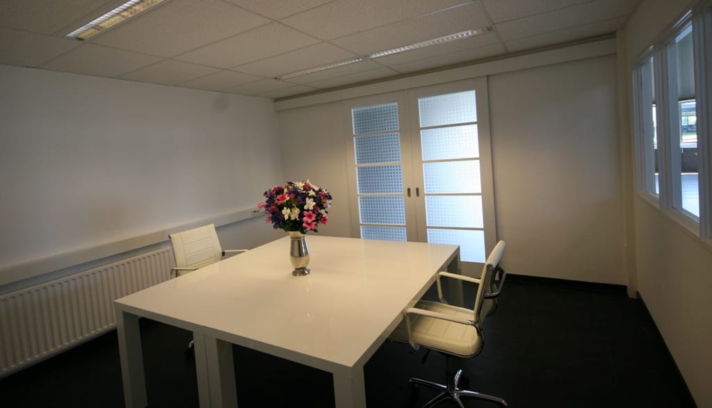 Kantoorruimten: Energiezuinige verlichting met sensoren, systeemplafond, kabelgoten voor datavoorzieningen en telefonie, HR+ isolatieglas met kant/kiep mechanisme, raam- jaloezieën, akoestisch gedempte vloertegels (antraciet), verwarming via CV radiatoren, luchtbehandeling systeem , toilet met fontein.