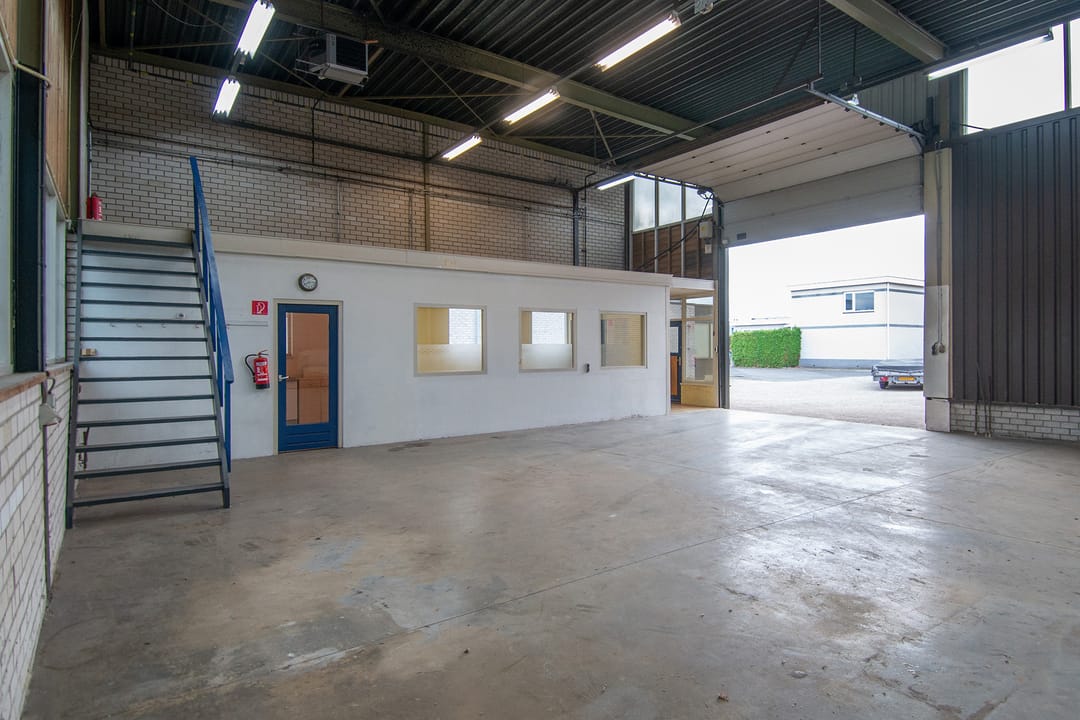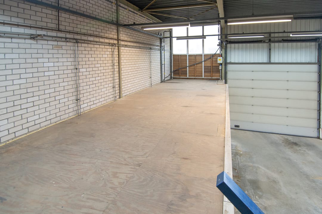 - Lichtstraten, overheaddeuren, krachtstroom, betonvloer, heater, toilet en pantry