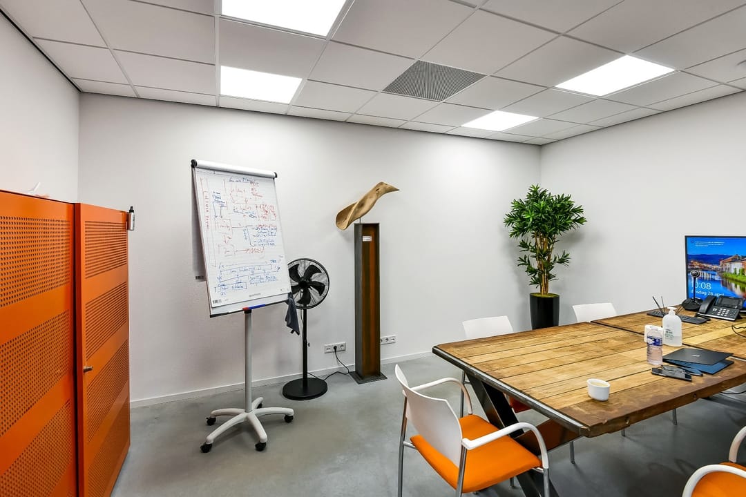Compleet ingerichte bedrijfsruimte met kantoor. Voldoende parkeergelegenheid op eigen terrein.