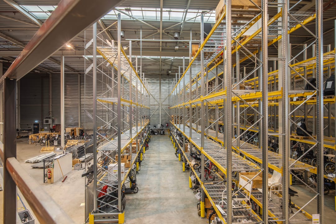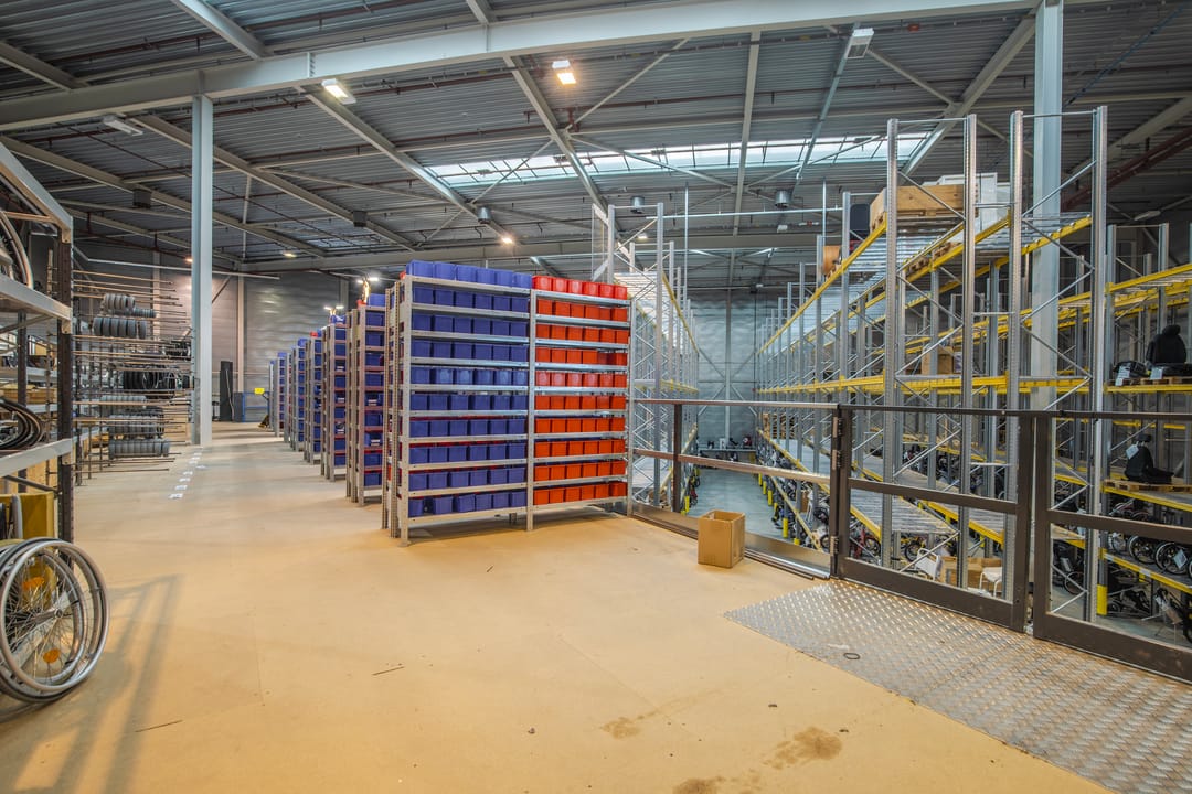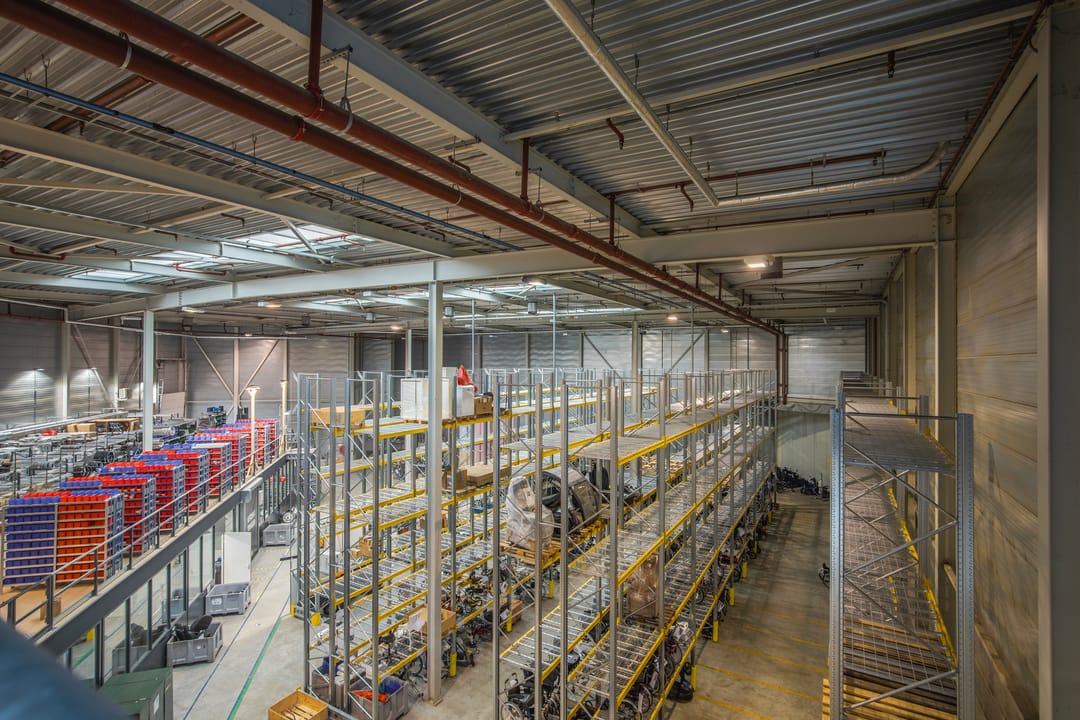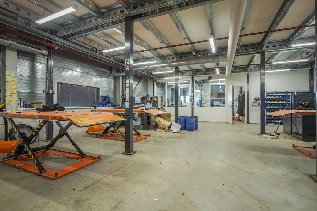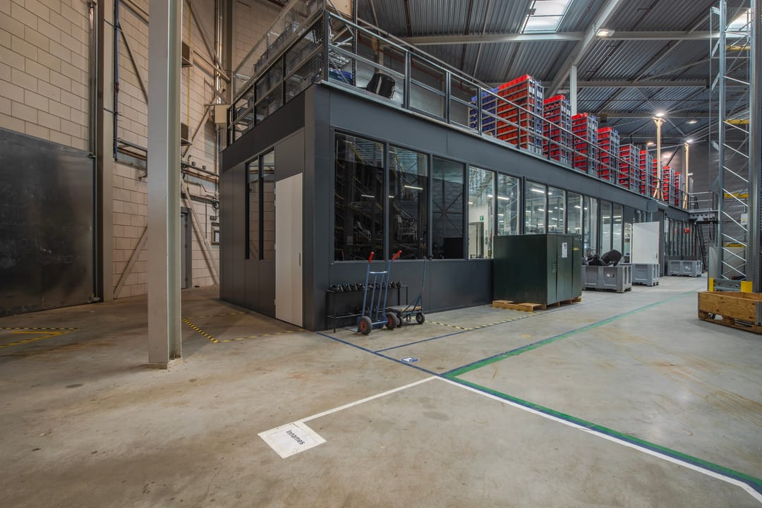 Inpandige werkplaats met verzwaarde entresolvloer voorzien van een goederenlift