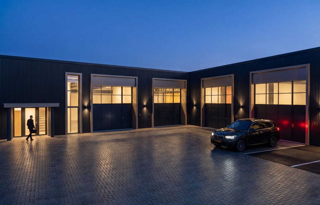 Middelgrote units van circa 77 tot 114 m2 bvo, geschikt voor ondernemers die opslag willen combineren met extra werkruimte.