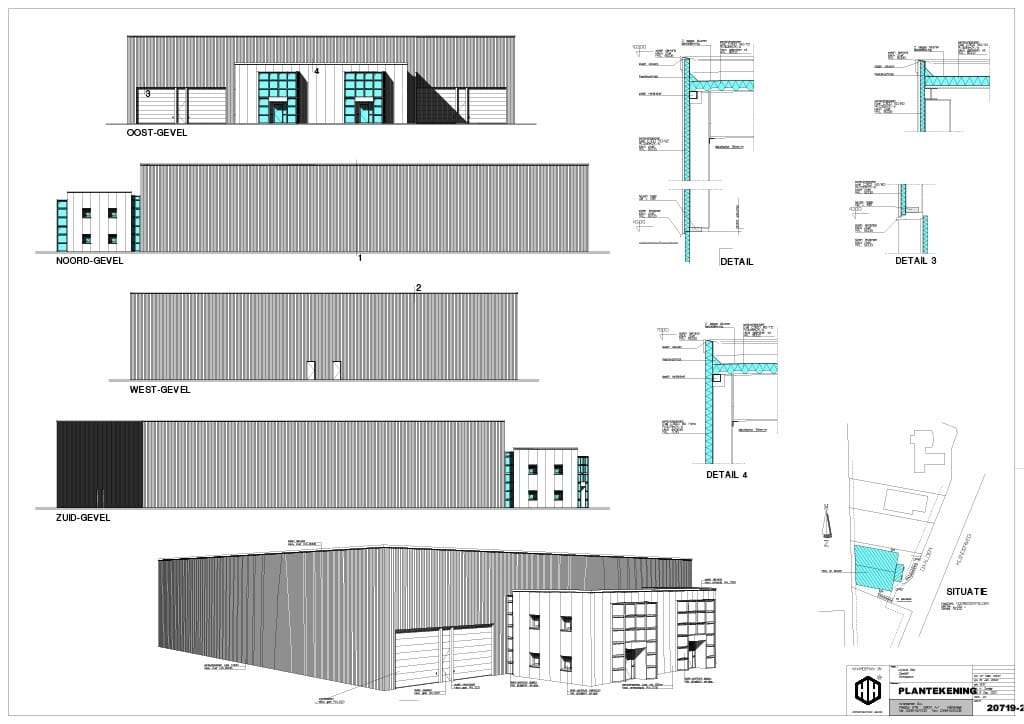 • Sanitair/kantoor/kantine in de bedrijfshal: ca. 60 m²