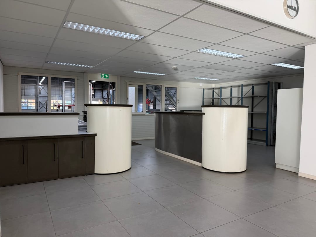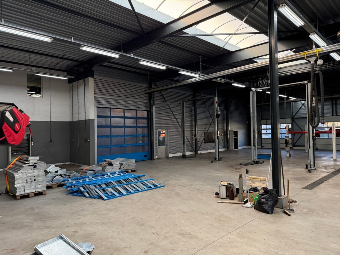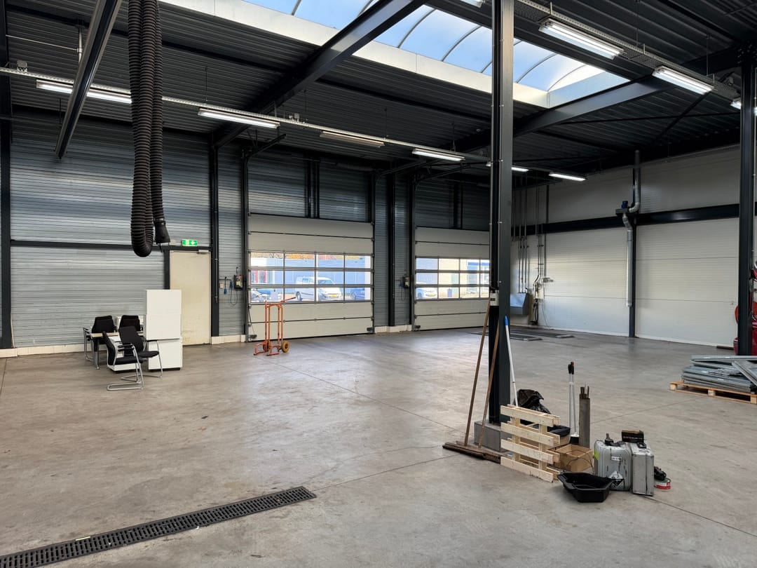 - Overheaddeuren, krachtstroom, betonvloer, heater, toilet en pantry