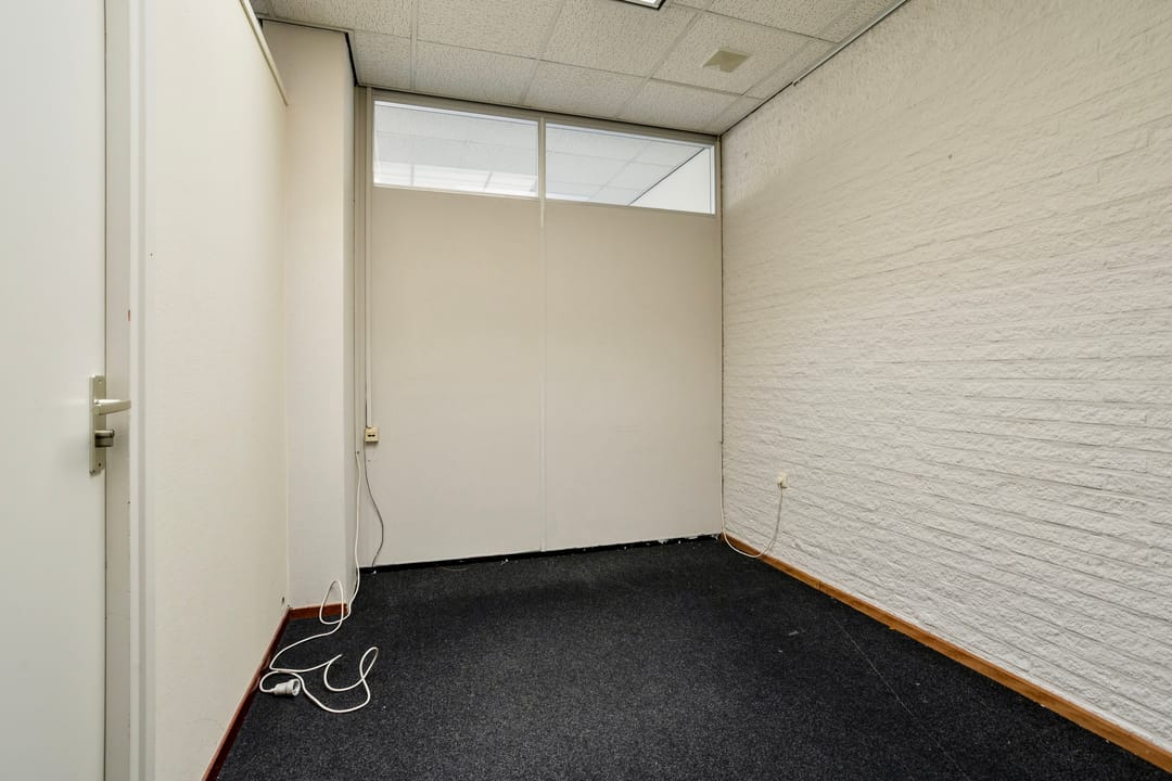 Het geheel bestaat thans uit 6 separate kantoorruimtes waarvan de grootste (ca. 78 m²) eenvoudig weer bij de bedrijfsruimte kan worden betrokken. De bedrijfsruimte bestaat uit drie compartimenten, verdeeld door lichte scheidingswanden.
