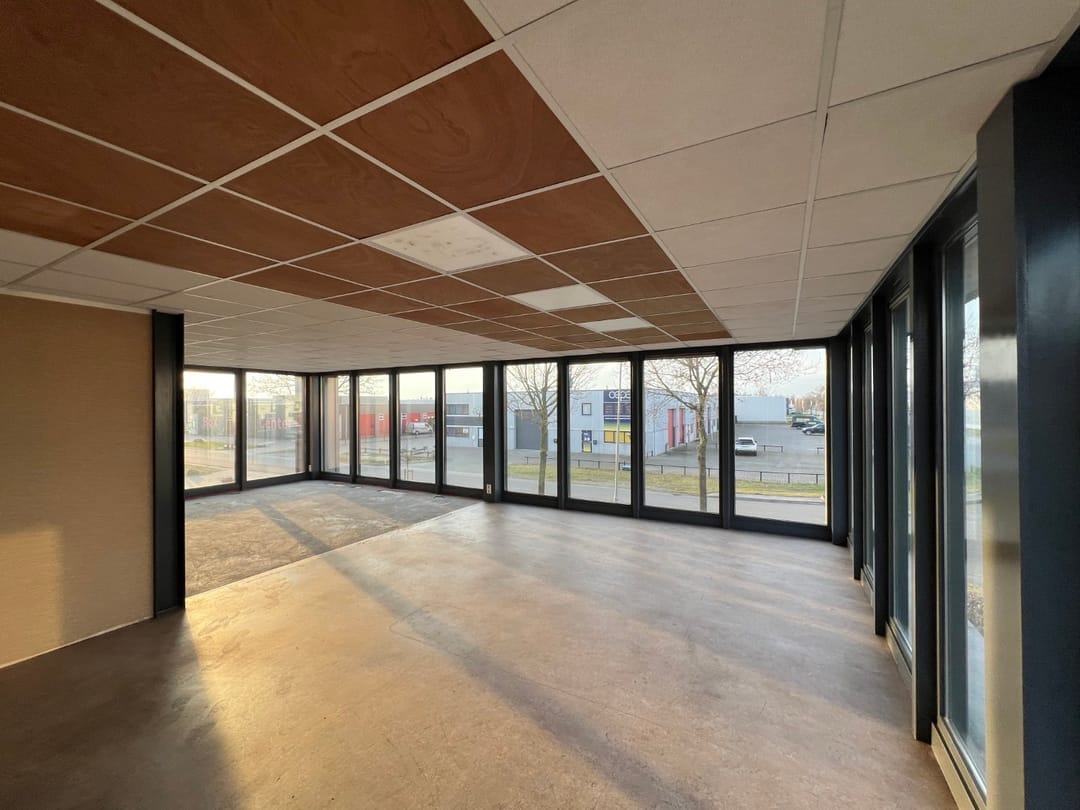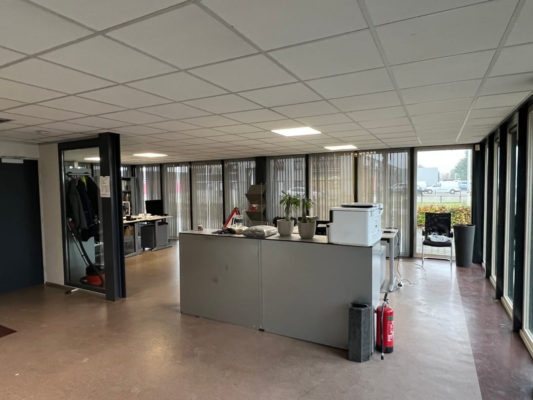 Entree, ruime kantoorruimte / showroom, pantry, sanitair, magazijn/ bedrijfsruimte.